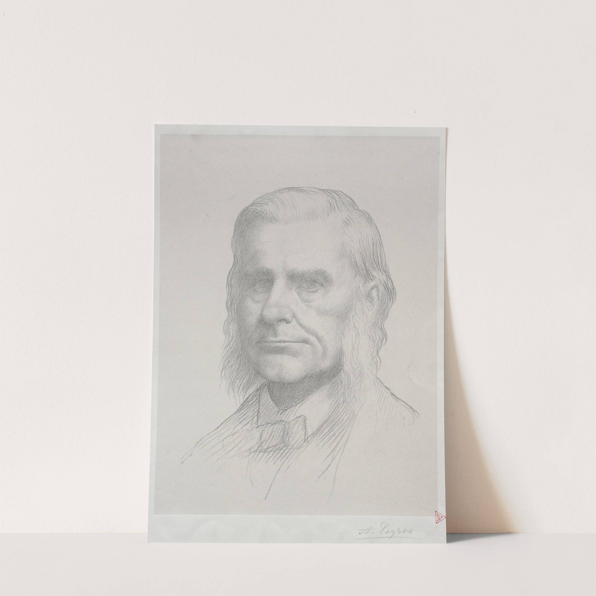This monochrome pencil portrait captures the likeness of Thomas Huxley with remarkable precision and detail. The artist, Alphonse Legros, has skillfully rendered the subject's gentle expression, capturing the subtle lines and contours of his face with delicate shading techniques. Huxley’s...
