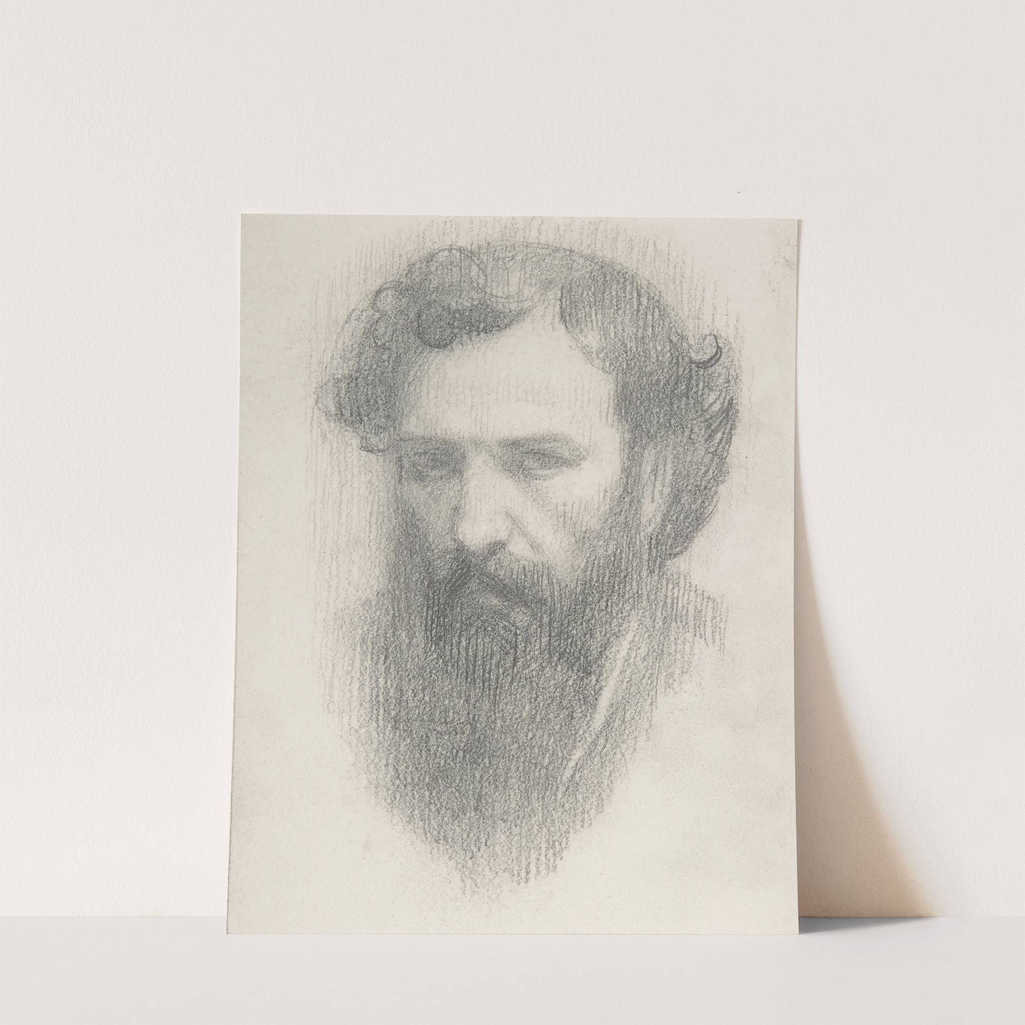 This artwork is a meticulously detailed pencil drawing of a male portrait by the renowned artist Alphonse Legros. The piece focuses on capturing the likeness of an older man with a contemplative expression. His face features deep-set eyes that are...