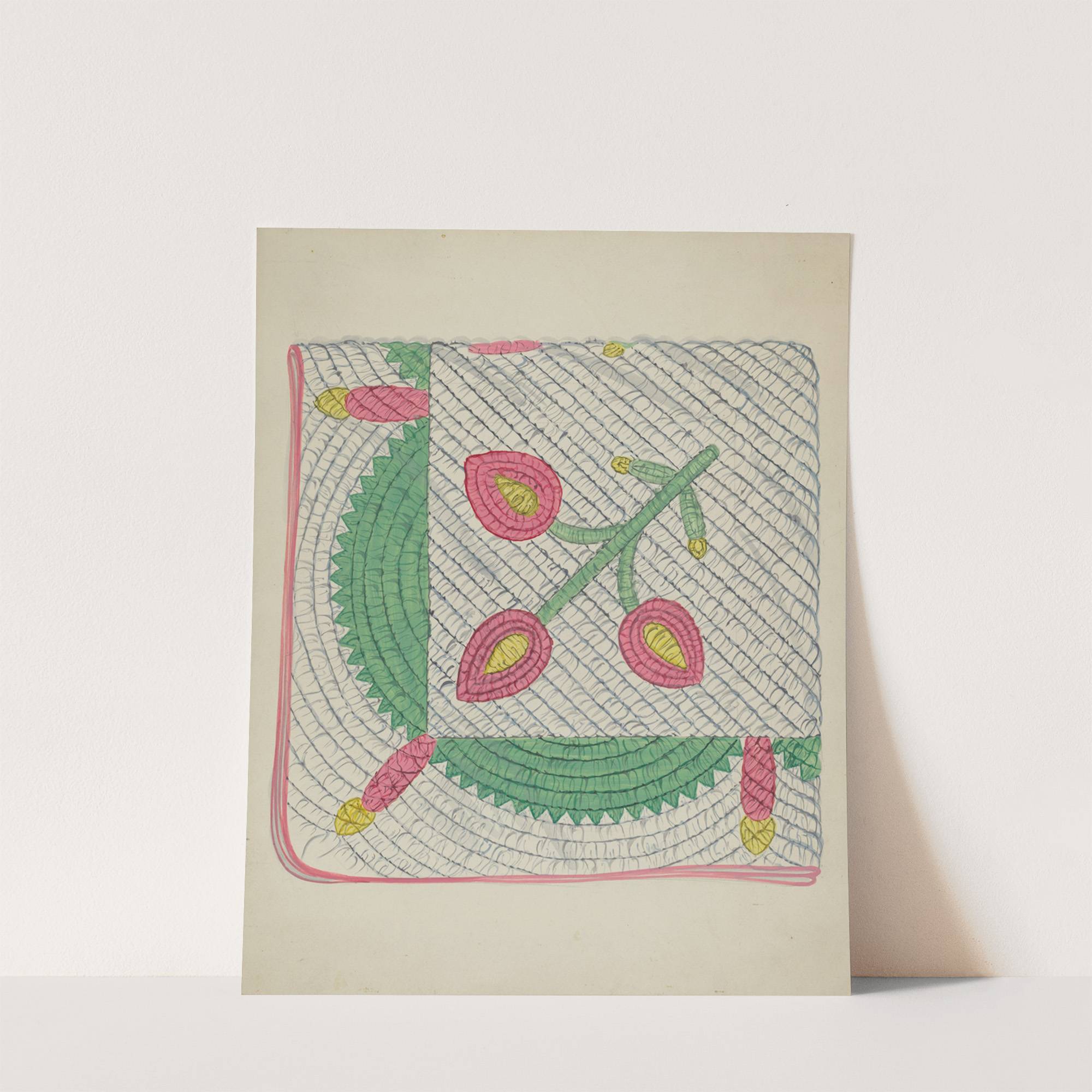 This vibrant quilt showcases a beautifully intricate appliqué design that captures the eye with its rich, colorful details. The centerpiece features a lush green leaf arch adorned with three prominently pink tulip blossoms. Each tulip is carefully outlined in yellow...