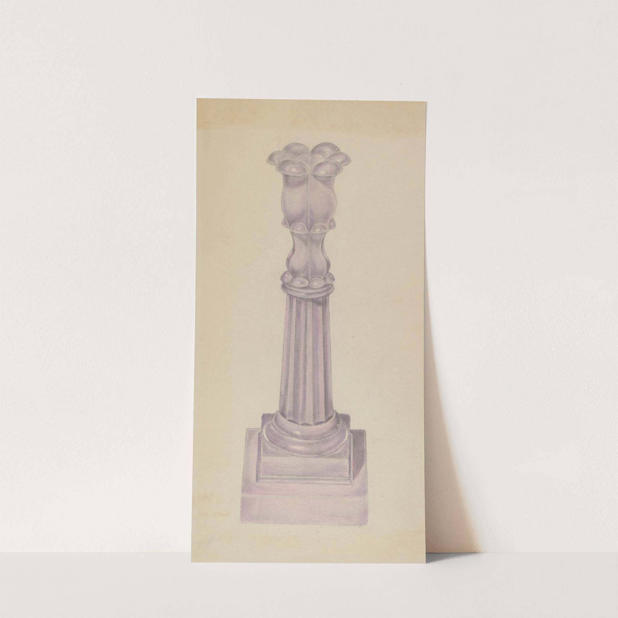 This art print features a beautifully rendered marble candlestick pillar, showcasing classic architectural elements in meticulous detail. The candlestick is depicted standing vertically on a square base, with fluted columns that rise to meet an ornate capital. The top of...