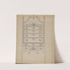 This elegant illustration features a meticulously detailed line drawing of a classic Victorian-era dresser, showcasing refined architectural elements and ornate design. The dresser is depicted with an arched top featuring two symmetrical candleholders flanking each side. Below the arch is...