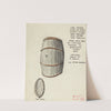 This digital artwork features a meticulously detailed illustration of an oval water cask, with text annotations providing historical context and additional information. The cask is depicted in a realistic style with precise shading and line work to highlight the wooden...