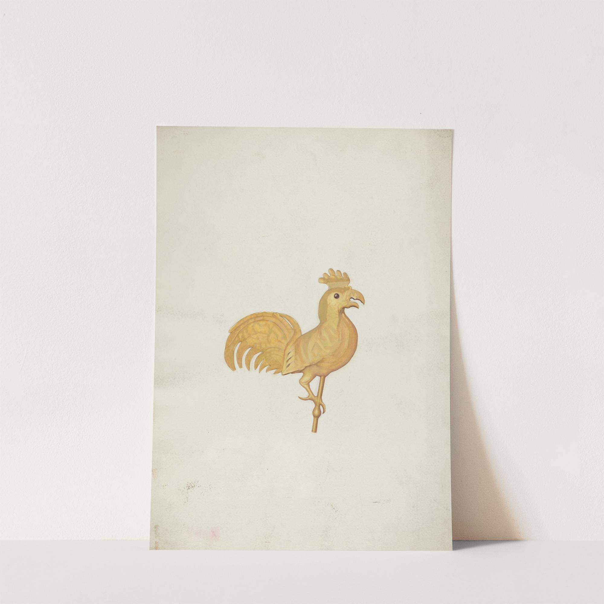 Introducing "Rooster Weather Vane" - a beautifully illustrated print that captures the essence of traditional Americana artistry. This piece features a rooster depicted in warm golden hues, with intricate detailing on its feathers and beak, highlighting its proud and majestic...