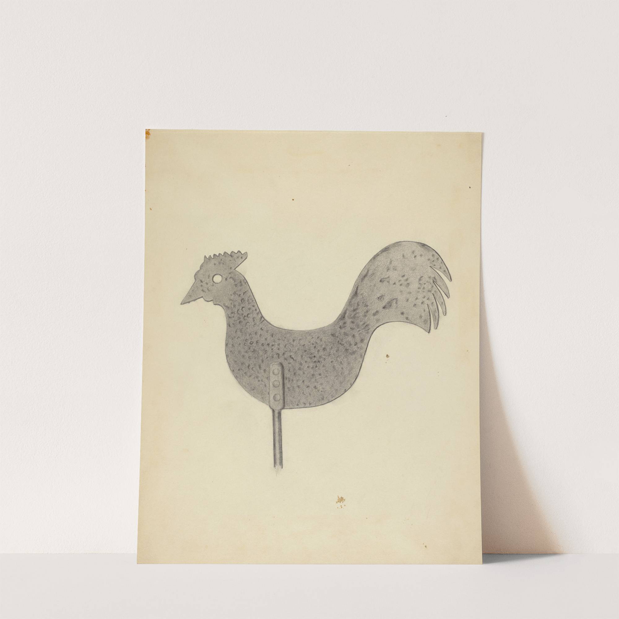 This is a charming, minimalist watercolor print of a rooster, showcasing a contemporary yet rustic style. The rooster is depicted in a simple silhouette form with a light gray color palette that features subtle shading and speckling to suggest texture....