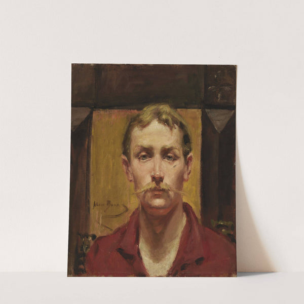 This captivating portrait is titled "Blond Man" by artist Alice Pike Barney. It features a close-up depiction of a man with light brown hair and a distinctive mustache. The painting showcases warm, earthy tones with rich browns and deep reds...