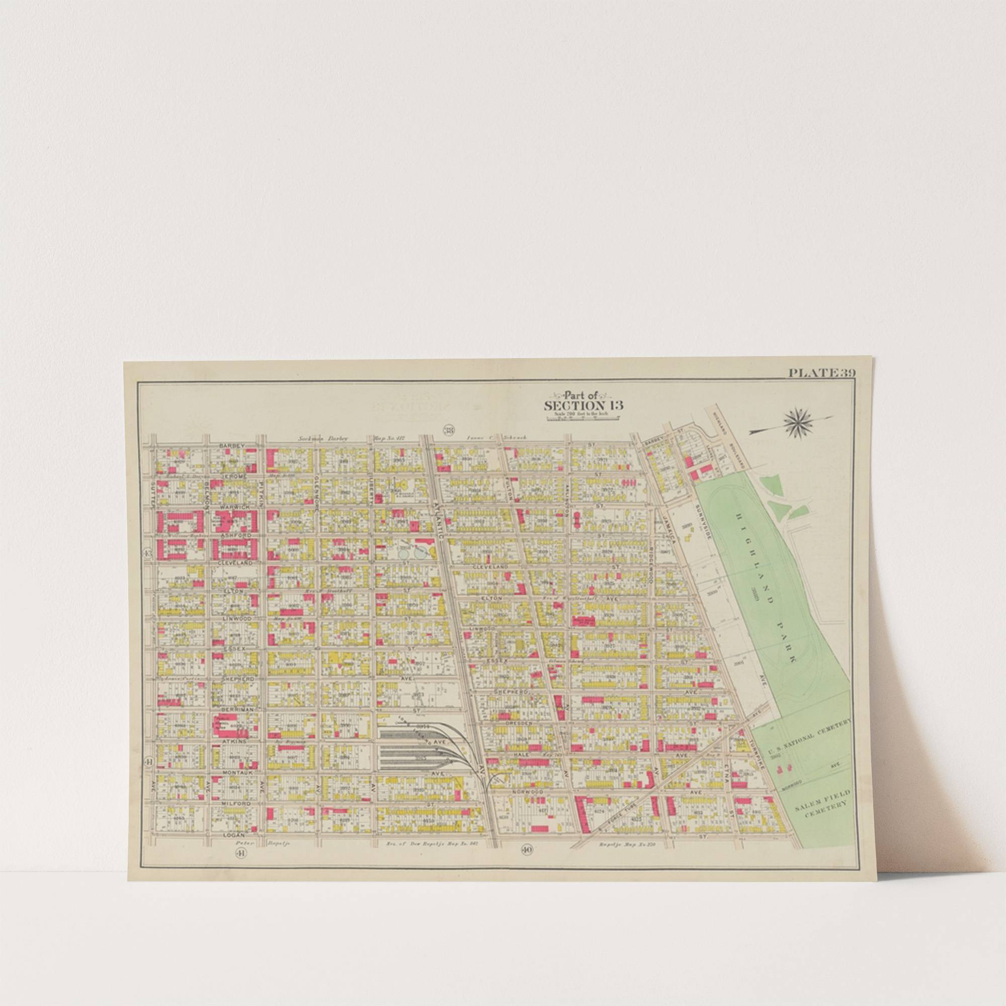 Bounded by Barbey Street, (Highland Park) Sunnyside Avenue, Force Tube Avenue, Jamaica Turnpike, Logan Street and Sutter Street by George Washington Bromley - Wall Art Print