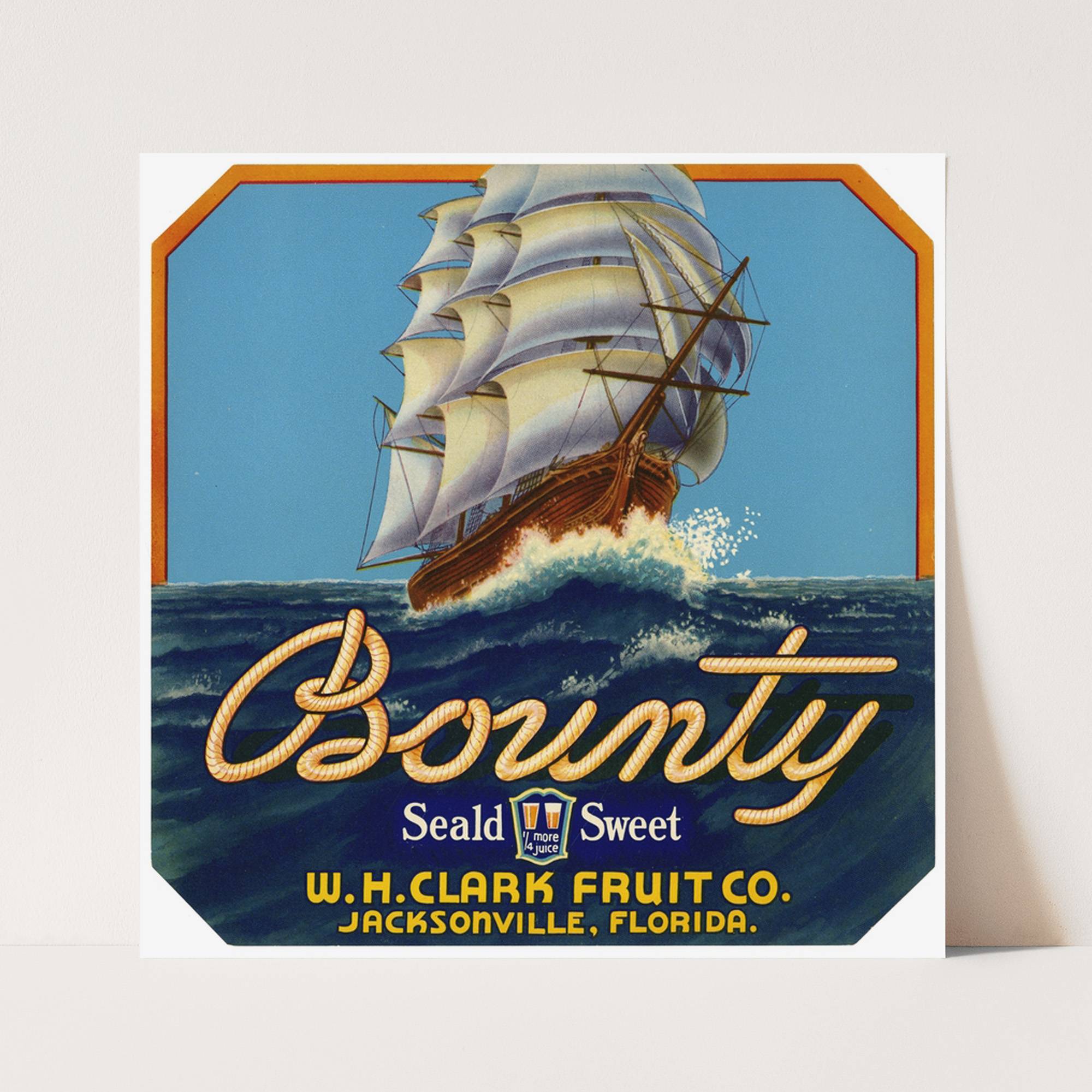 Bounty Fruit Label (1930-1950) - Wall Art Print