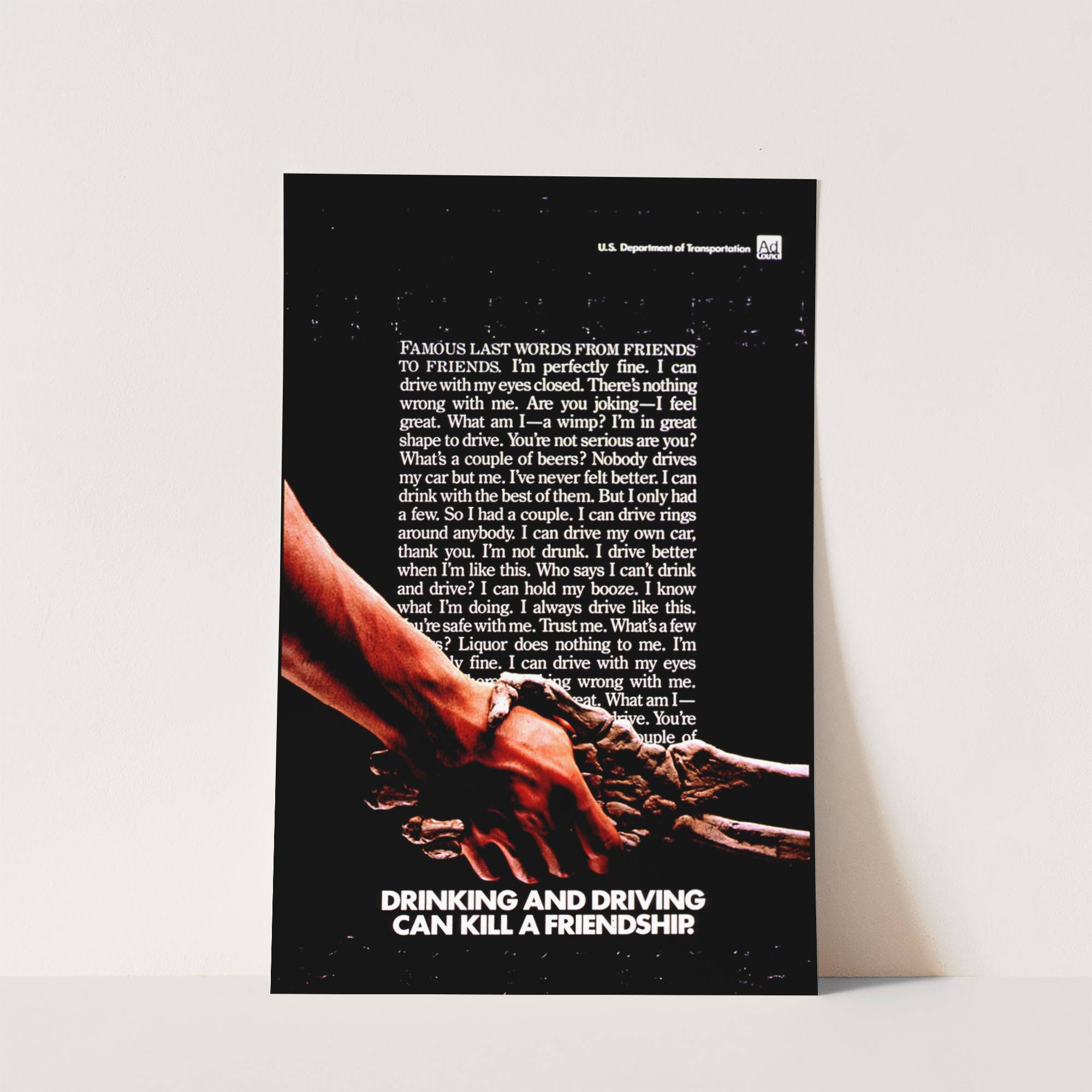 Drinking and driving can kill a friendship by U.S. Dept. of Transportation - Wall Art Print