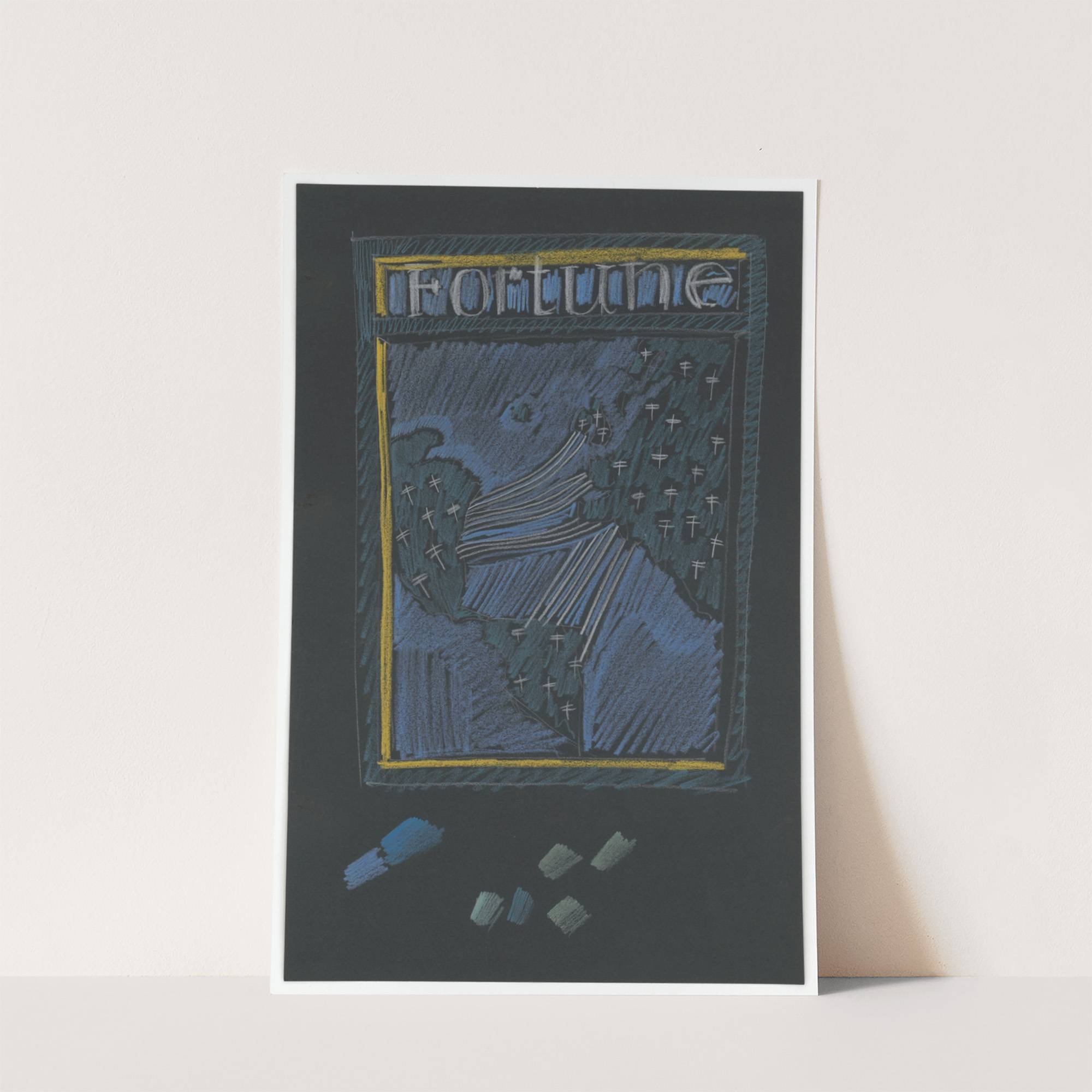 Graphic designs for Fortune Magazine.] [Study for cover with telephone lines at different locations on the globe by Winold Reiss - Wall Art Print