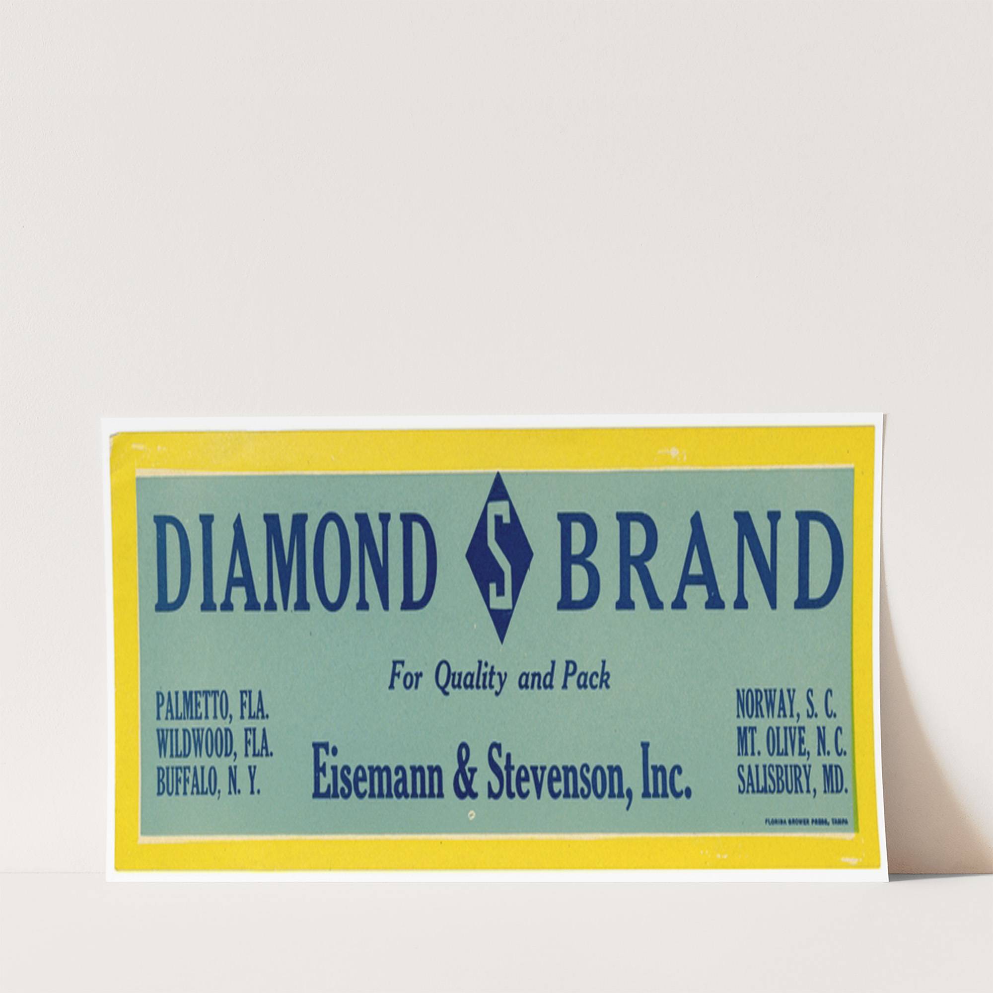Produce Label for Diamond S Brand – Yellow (1930-1950) - Wall Art Print