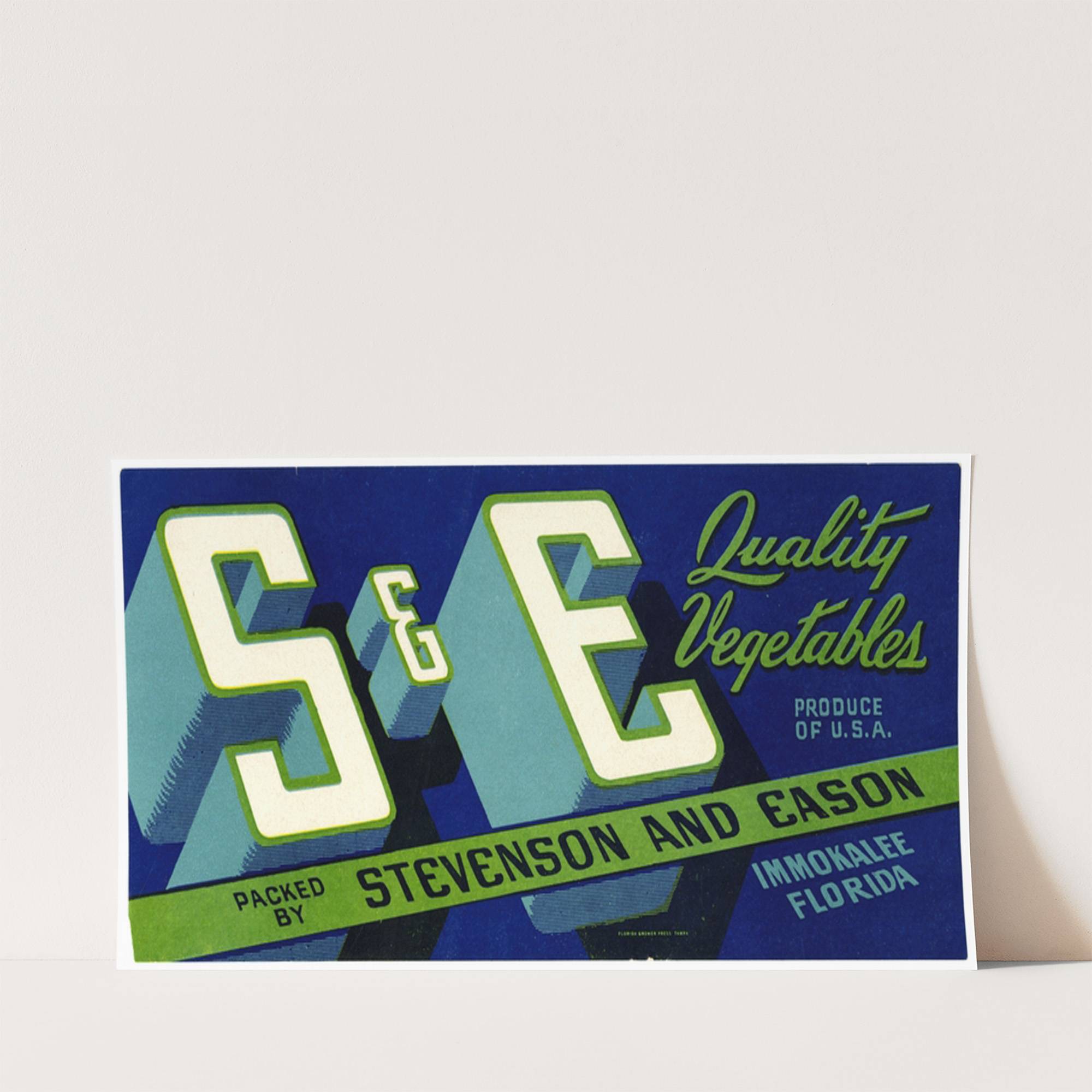 S and E Quality Vegetables Label (1930-1950) - Wall Art Print