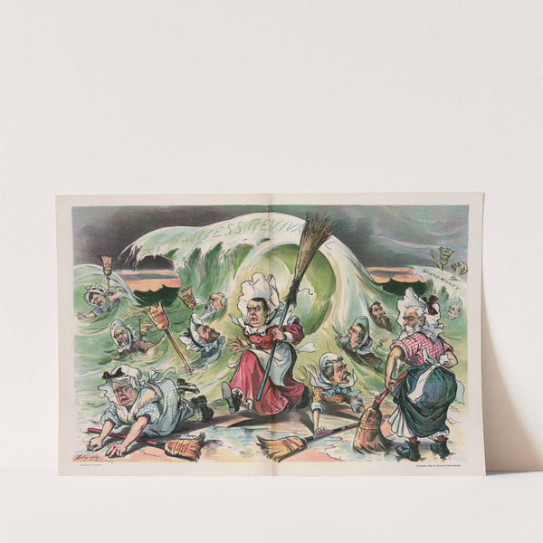 Silly old women! – their little brooms can’t sweep back the great big ocean by Louis Dalrymple - Wall Art Print