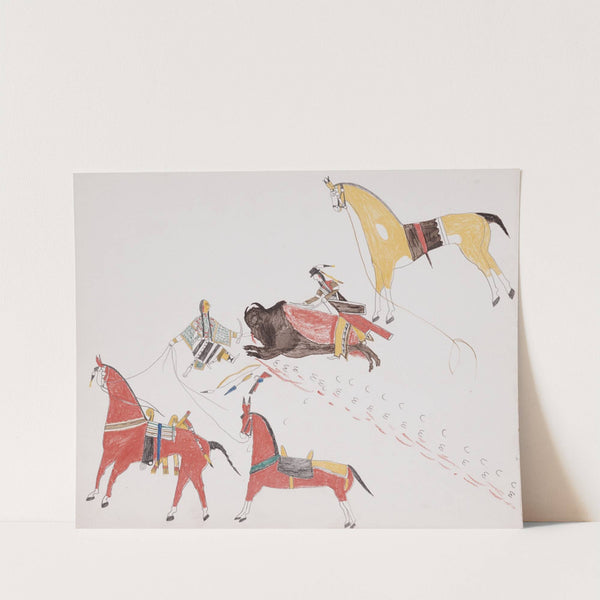 Skinning a bison after a hunt by Howling Wolf - Wall Art Print