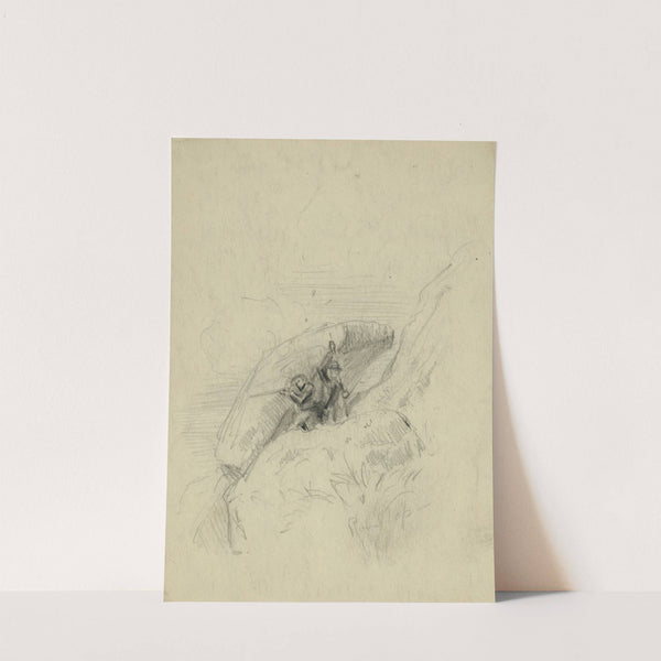 Soldiers shooting from behind rock at Round Top by Alfred Rudolph Waud - Wall Art Print
