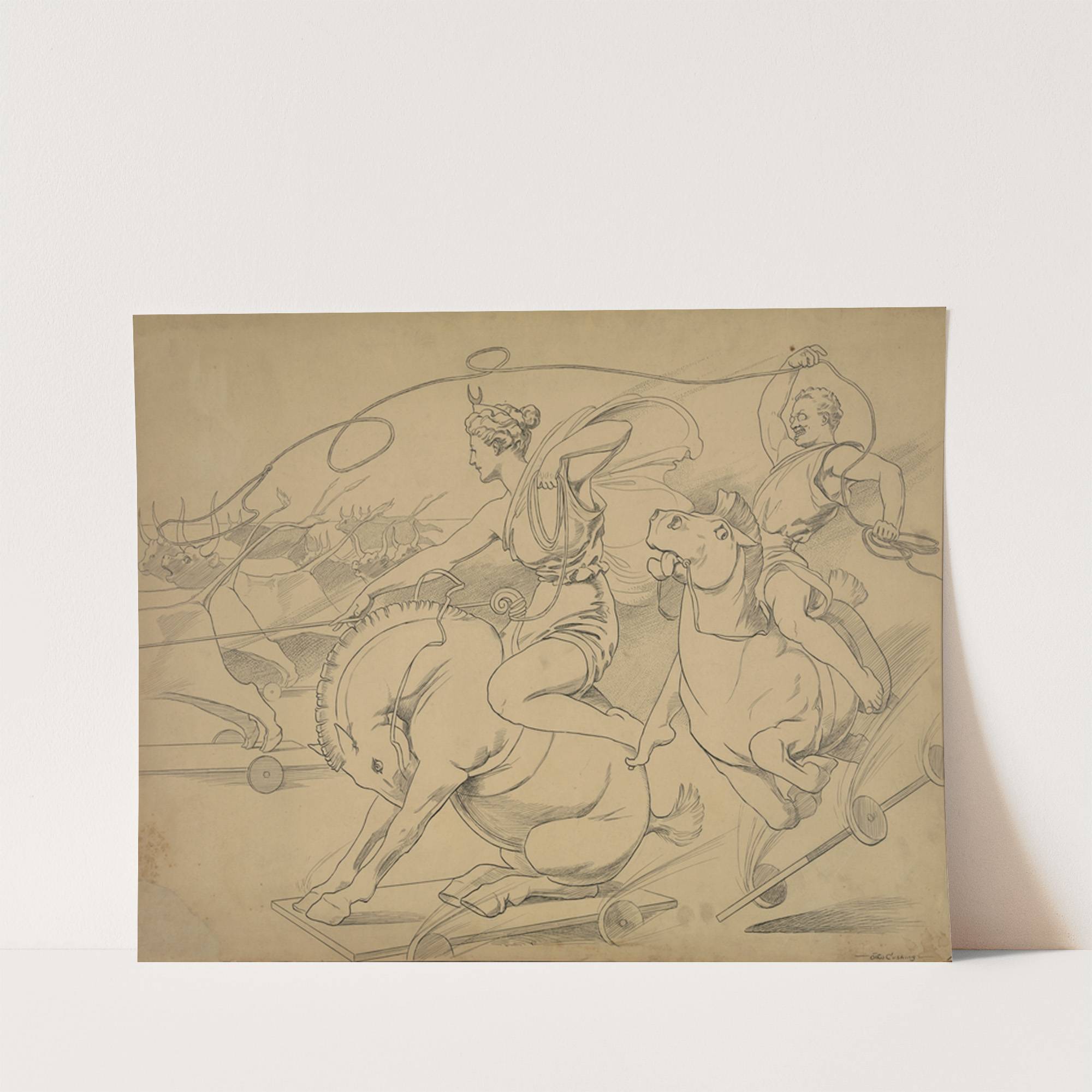 The goddess of hunting, at the request of Pallas Columbia, accustoms Teddysses to the perils of the chase by Otho Cushing - Wall Art Print