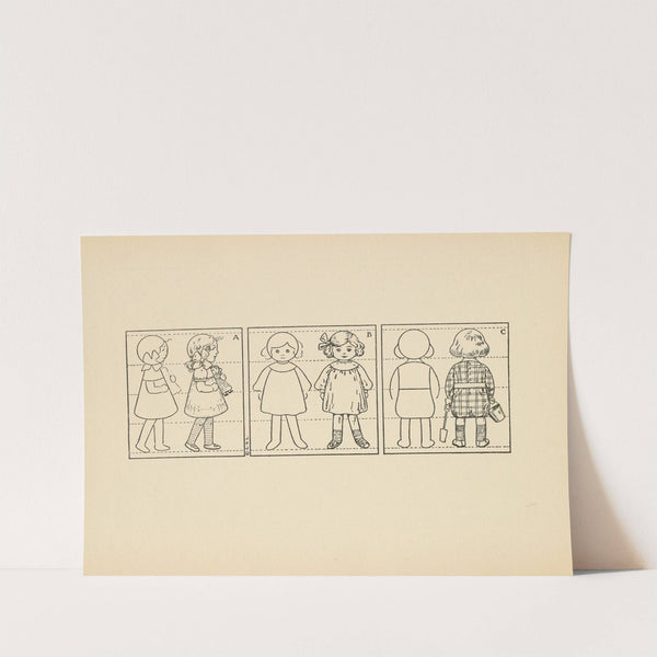 This artwork is "Pl.58" by Edwin George Lutz, showcasing a charming sequence of five child characters in simple black-and-white line drawings. Each child is depicted from different angles: front (A), side (B), and back (C). The artist employs a minimalist...