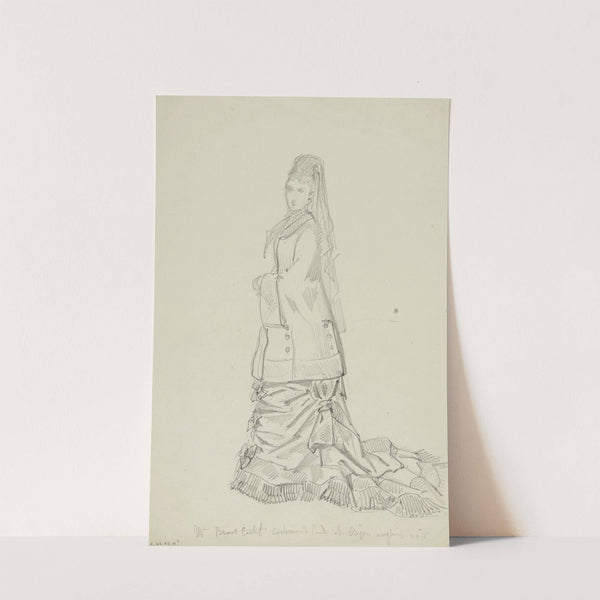 This exquisite art print features a meticulously detailed line drawing of a woman in an elaborate 19th-century style dress. The artwork, created by the talented artist Anaïs Colin-Toudouze, captures a moment of serene elegance and grace. The woman stands slightly...