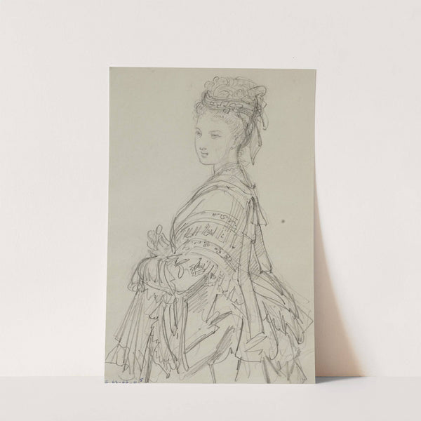 Femme de trois-quarts avec coiffe, châle sur les épaules et ombrelle repliée (1868-1878) by Anaïs Colin-Toudouze - Wall Art Print