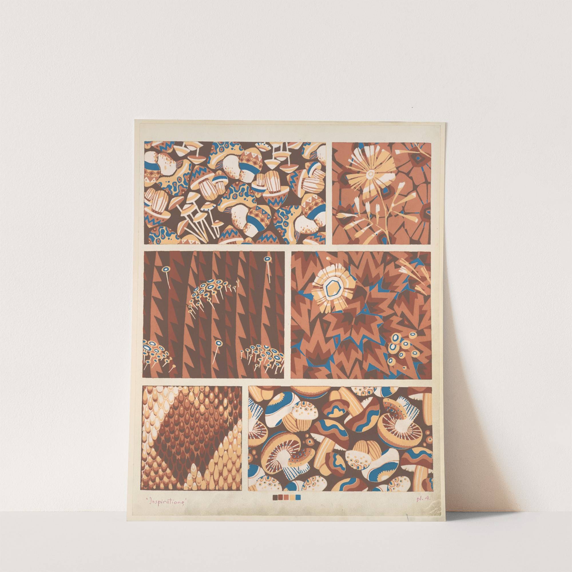 This art print showcases six vibrant, abstract plant form compositions by the artist André Durenceau. Each panel is bursting with energetic colors and dynamic shapes, primarily featuring deep reds, warm oranges, bright whites, and striking blues.The top left panel depicts...