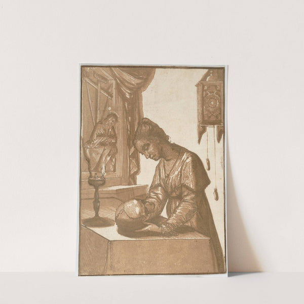 Experience the timeless elegance of "Woman Meditating on a Skull" by Andrea Andreani, a masterpiece that beautifully captures an intimate moment of reflection. This sepia-toned etching showcases a woman with her head bowed in contemplation as she gently lays her...