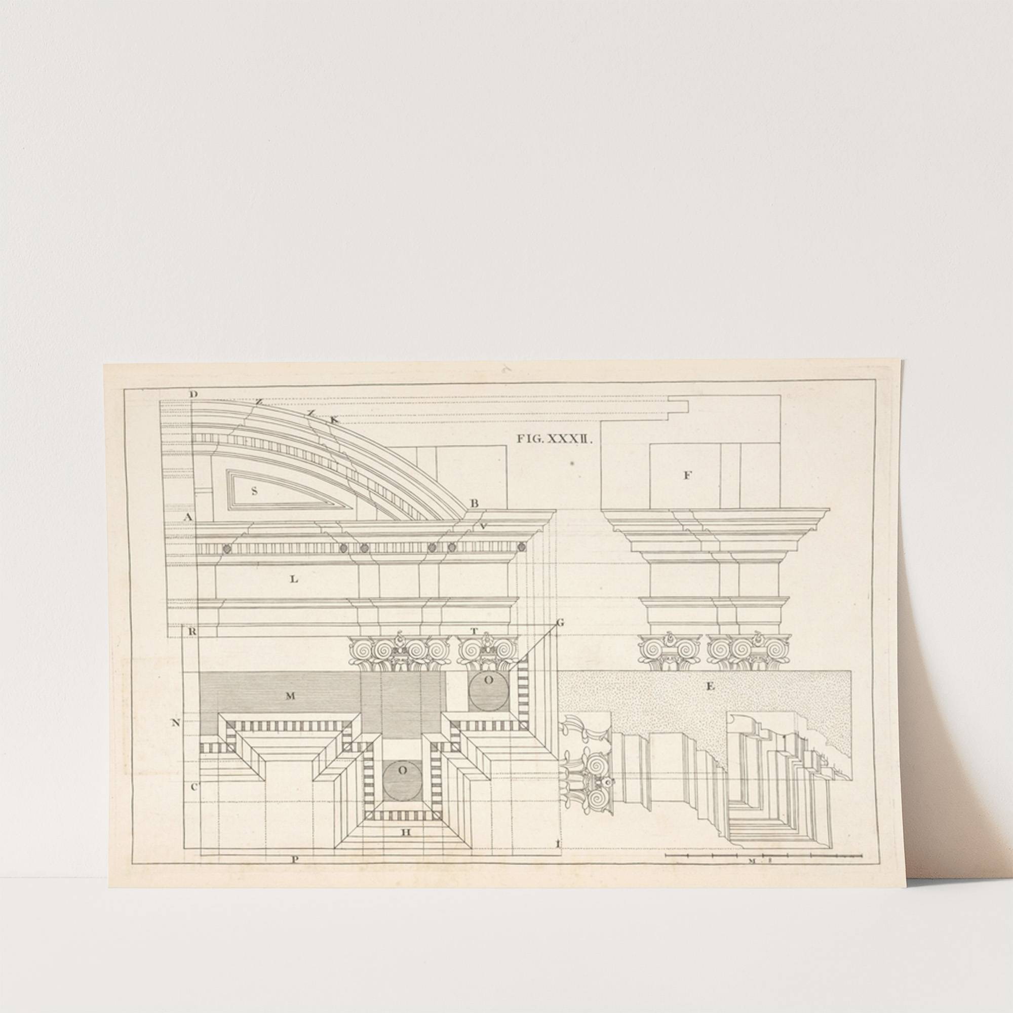 The geometrical design of a cornice, of the composite order. by Andrea Pozzo - Wall Art Print