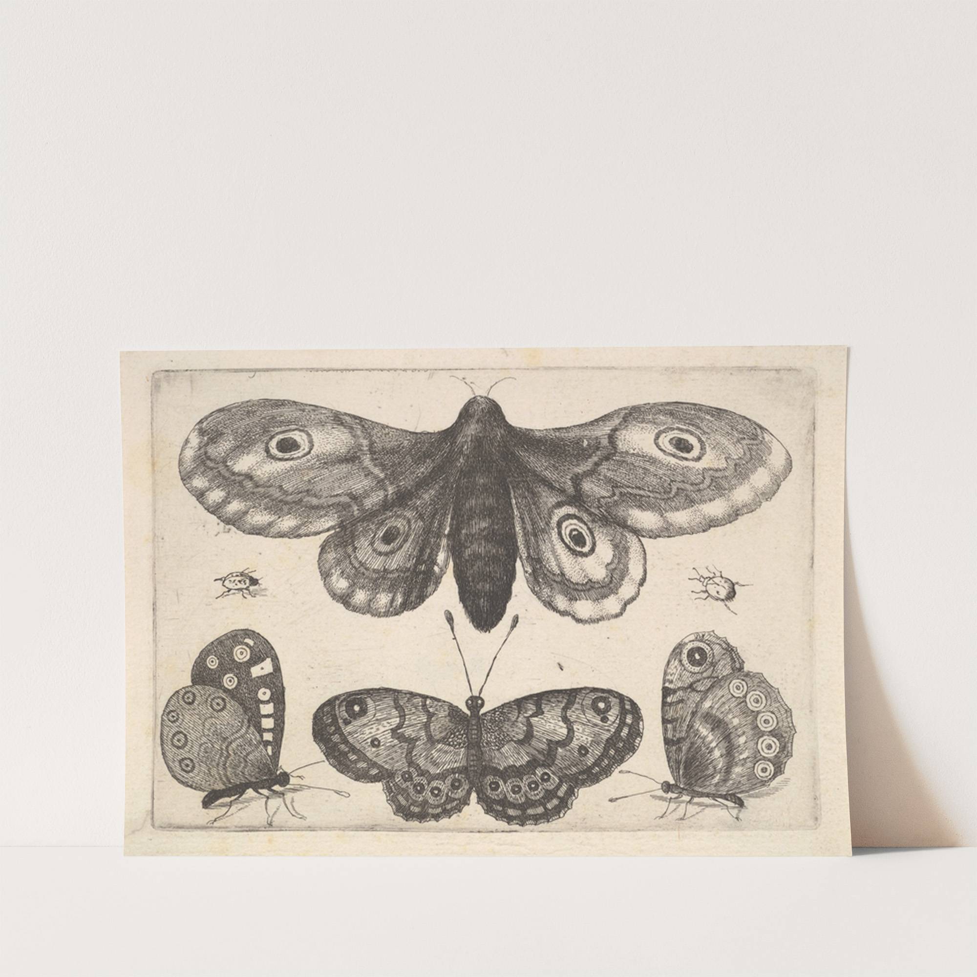 A moth, three butterflies and two beetles (1646) by Wenceslaus Hollar - Wall Art Print