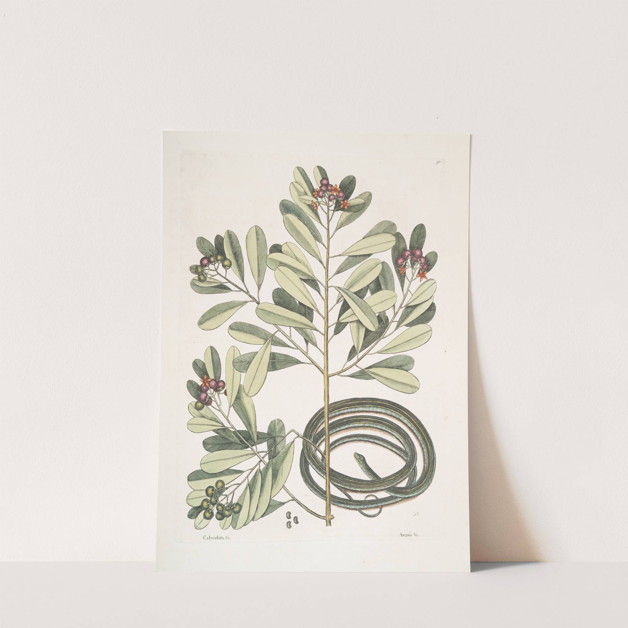 Calyculato &c., Winter’s Bark; Anguis gracilis fuscus, The Ribbon-Snake. by Mark Catesby - Wall Art Print