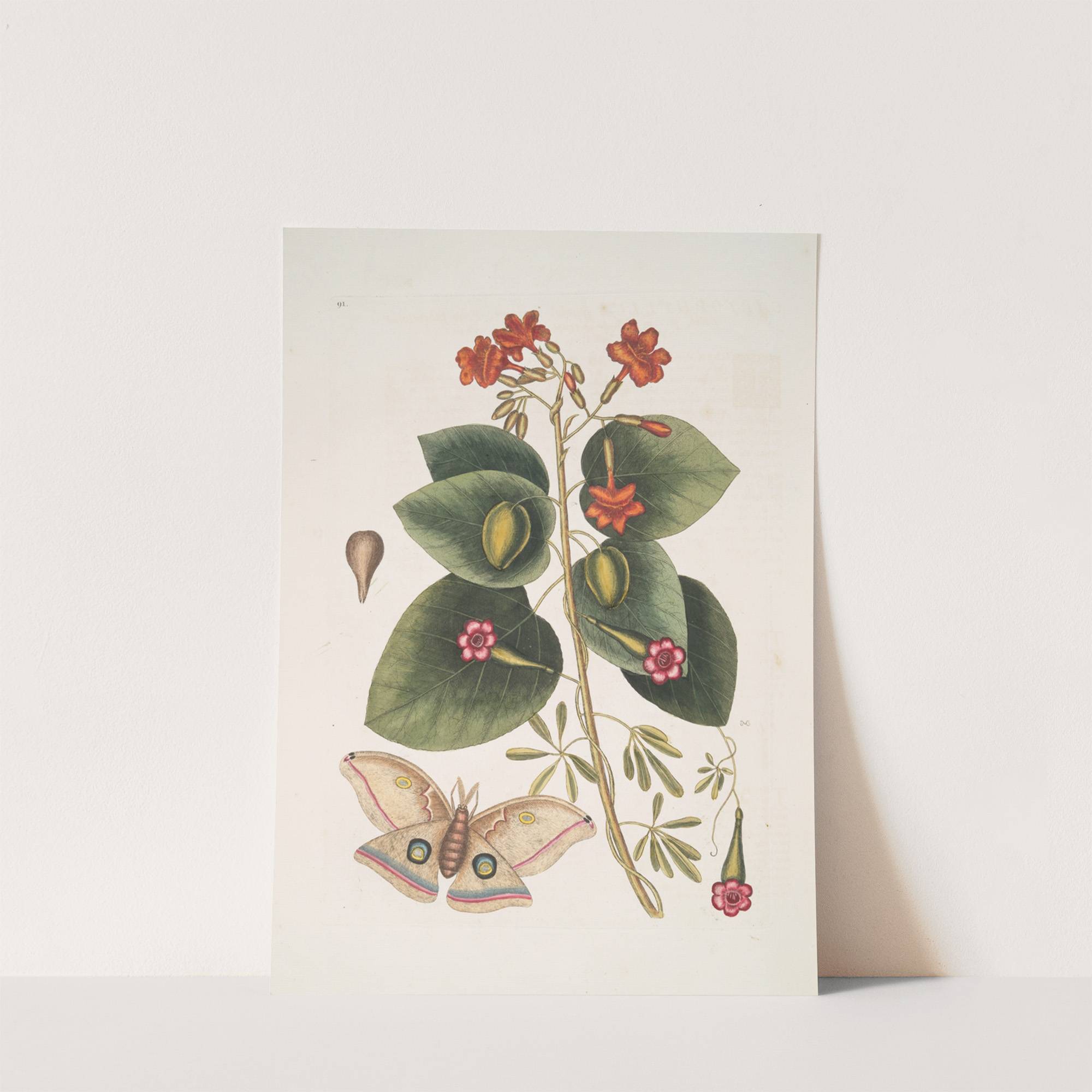 Caryophyllus spurius inodorus &c.; Convolvulus minor Pentaphyllos &c.; Phalæna ingens, The Great Moth. by Mark Catesby - Wall Art Print