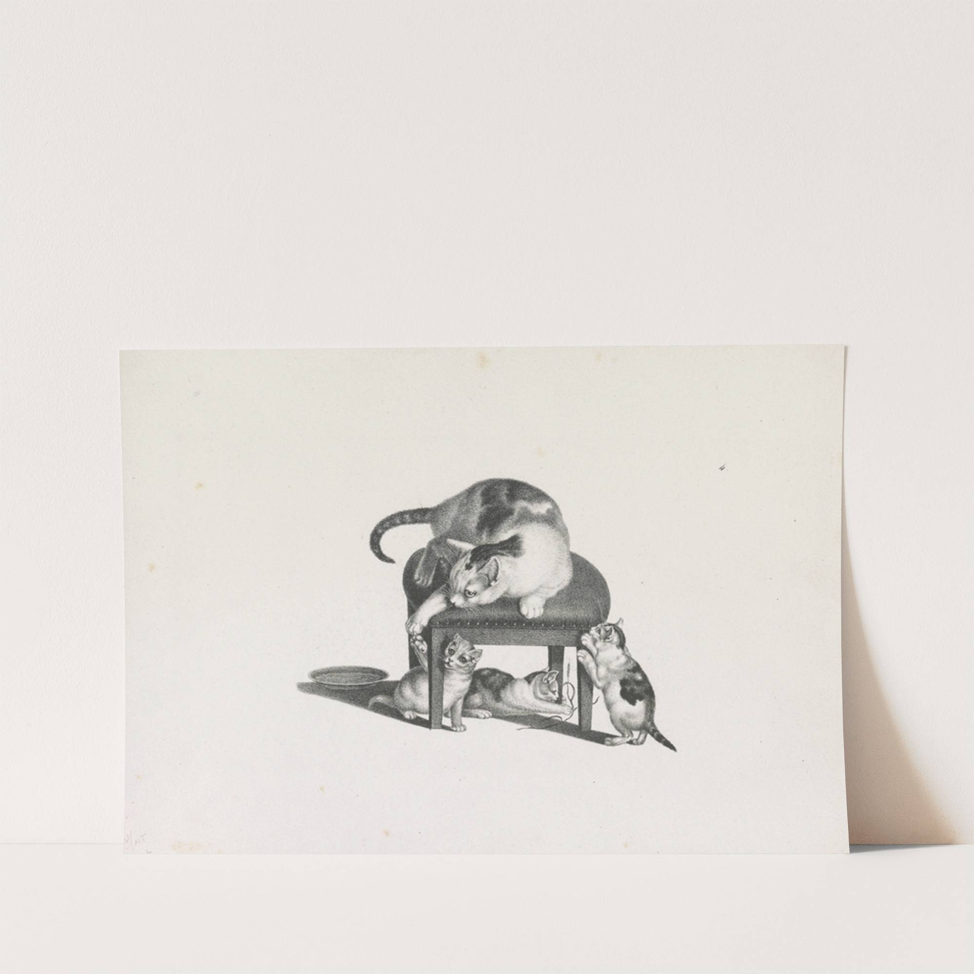 Domestic cat on a stool playing with three kittens (1820-1860) by Gottfried Mind - Wall Art Print