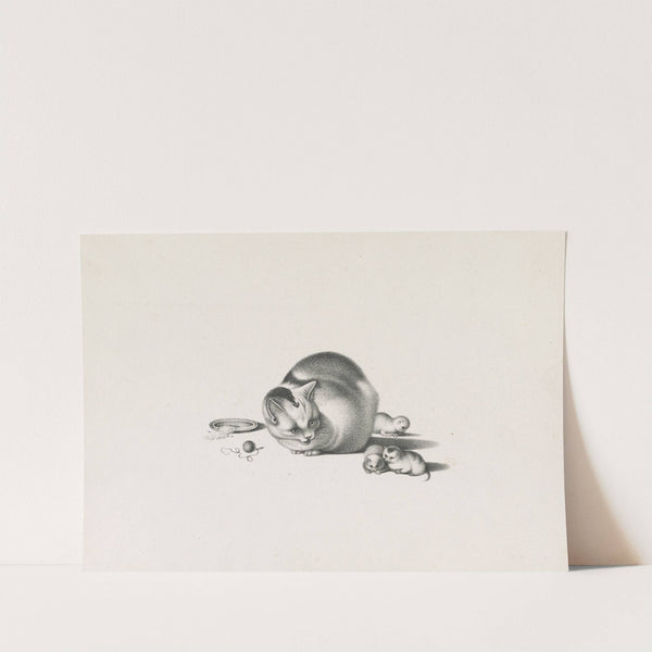 Domestic cat with three newborn kittens and a saucer of food on the left (1820-1860) by Gottfried Mind - Wall Art Print