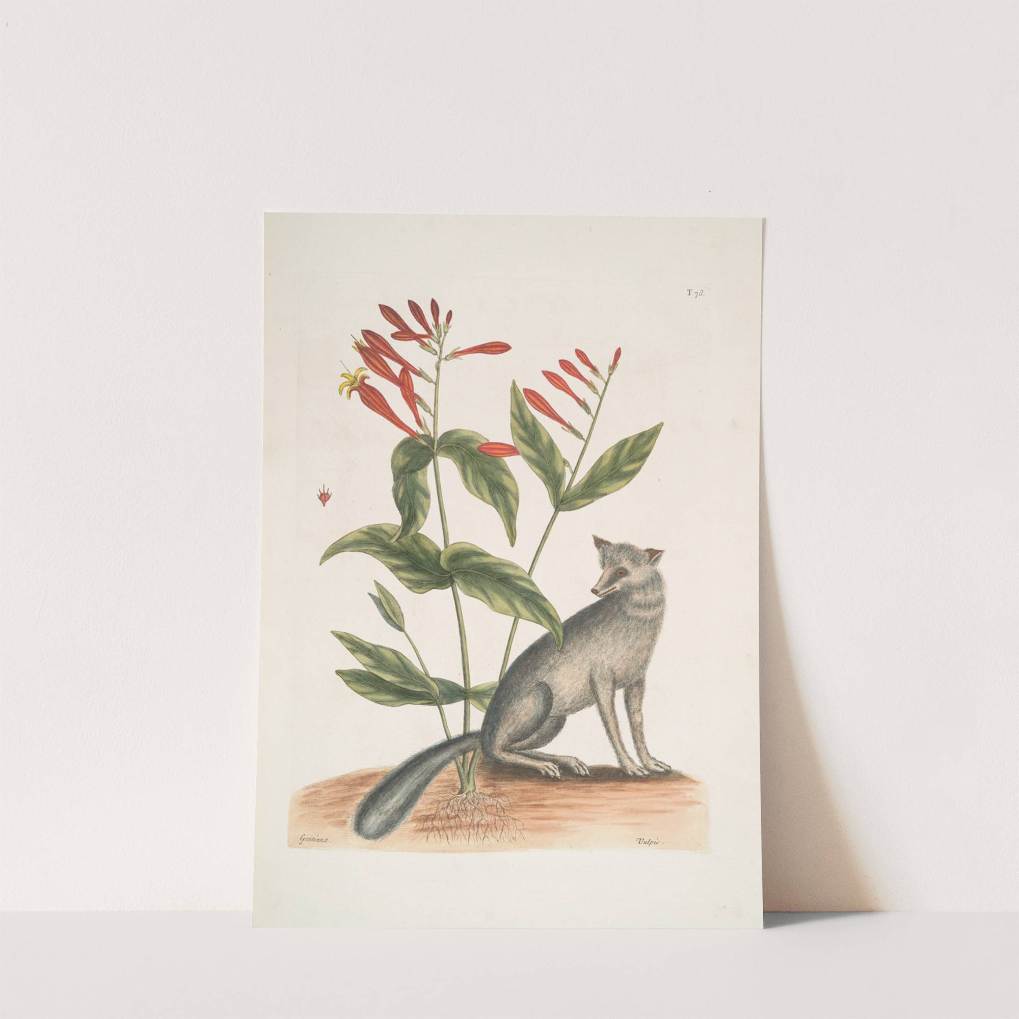 Gentiana, The Indian Pink; Vulpis, The Grey Fox. by Mark Catesby - Wall Art Print