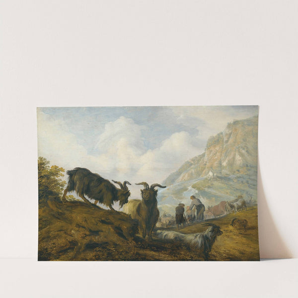 Goats On A Hillside With Herders Beyond by Jacobus Sibrandi Mancadan - Wall Art Print