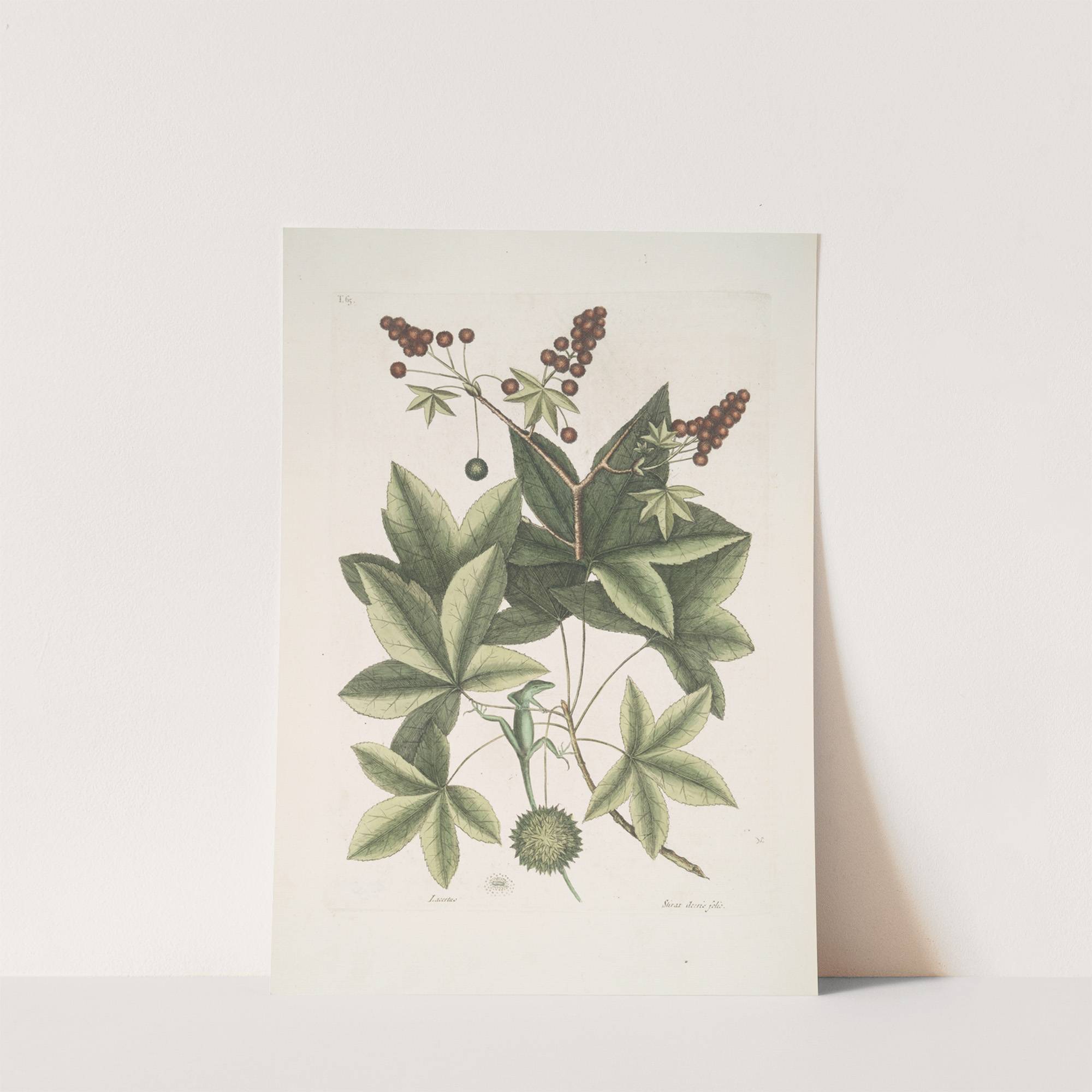 Lacertus viridis Carolinensis, The Green-Lizard of Carolina; Stirax Aceris folio, The Sweet Gum-Tree. by Mark Catesby - Wall Art Print