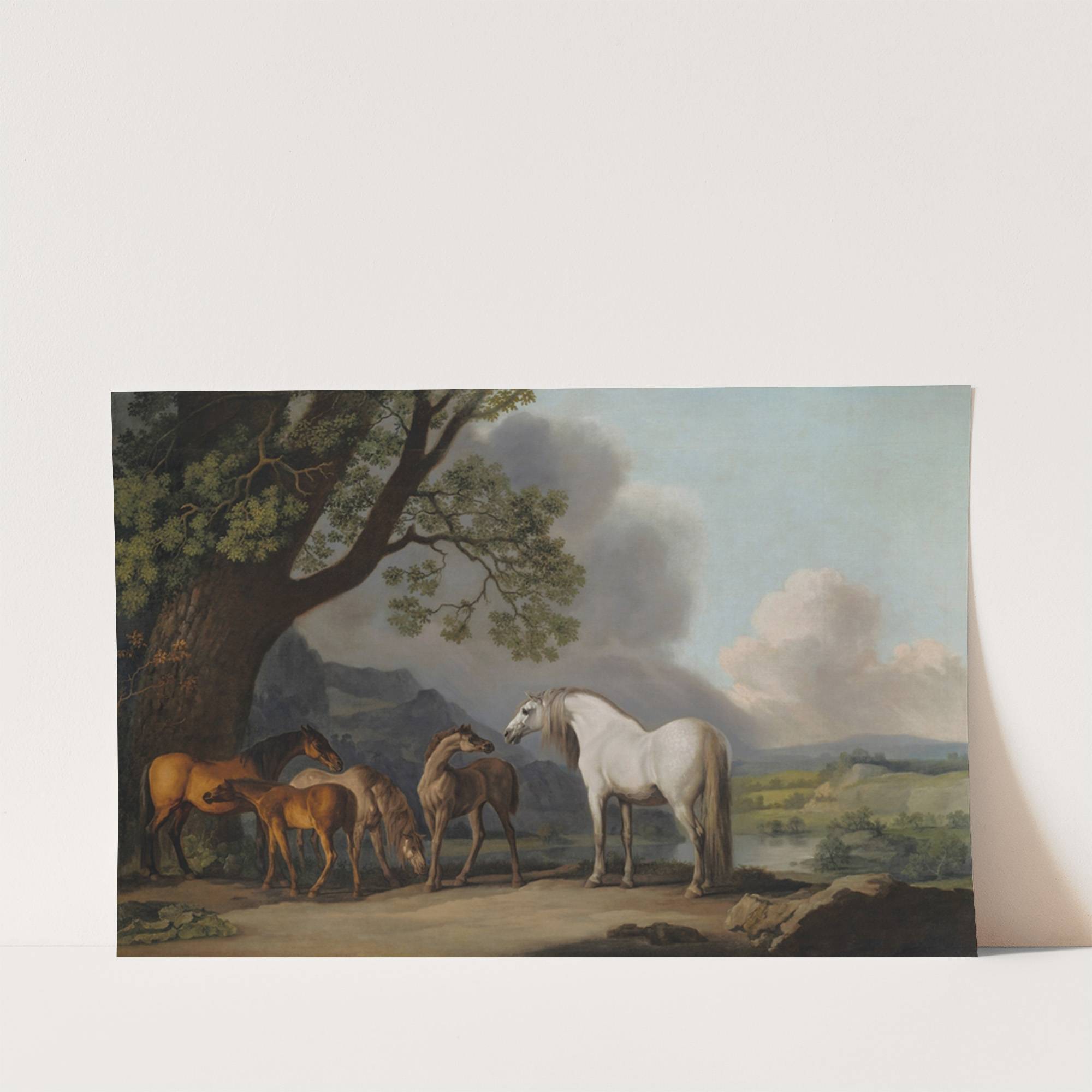 Mares and Foals in an extensive landscape by George Stubbs - Wall Art Print