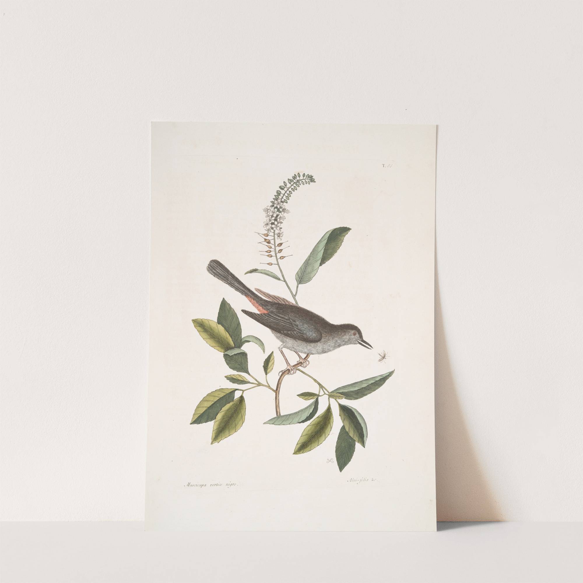 Muscicapa vertice nigro, The Cat-bird; Alni folia Americana serrata. by Mark Catesby - Wall Art Print
