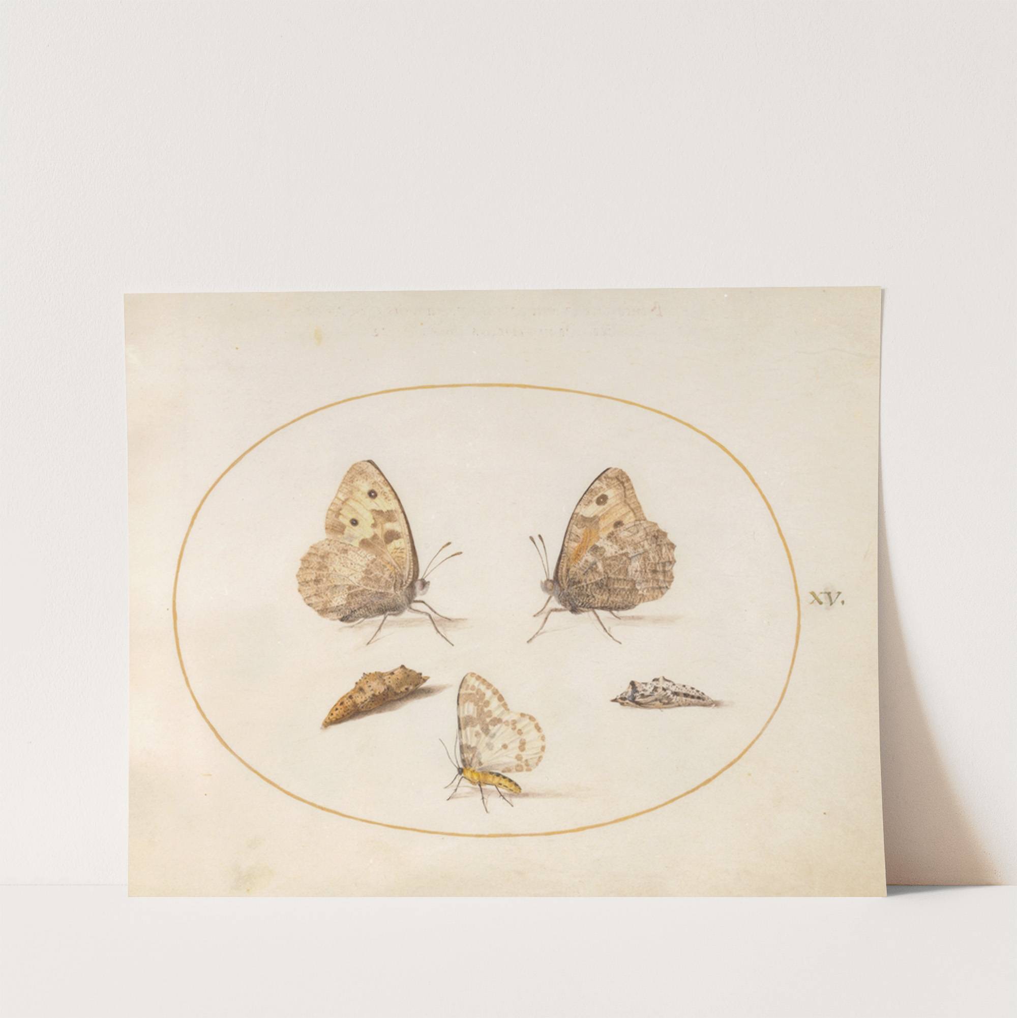 Plate 15; Grayling Butterfly, Magpie Moth, and Two Chrysalides (1575-1590) by Joris Hoefnagel - Wall Art Print