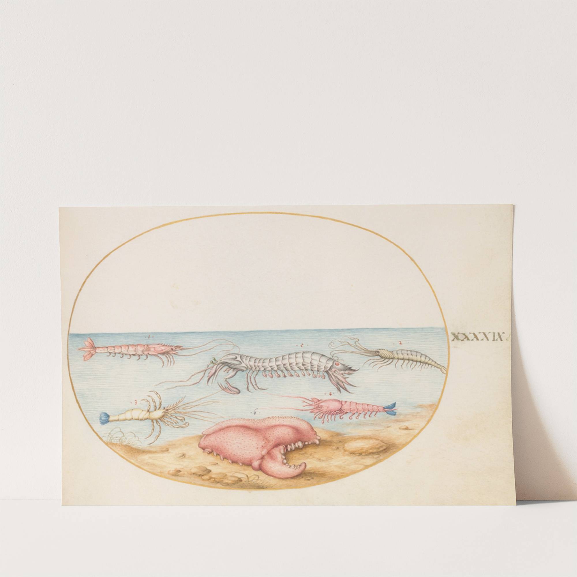 Plate 49; Mantis Shrimp and the Claw of a European Crayfish (1575-1590) by Joris Hoefnagel - Wall Art Print