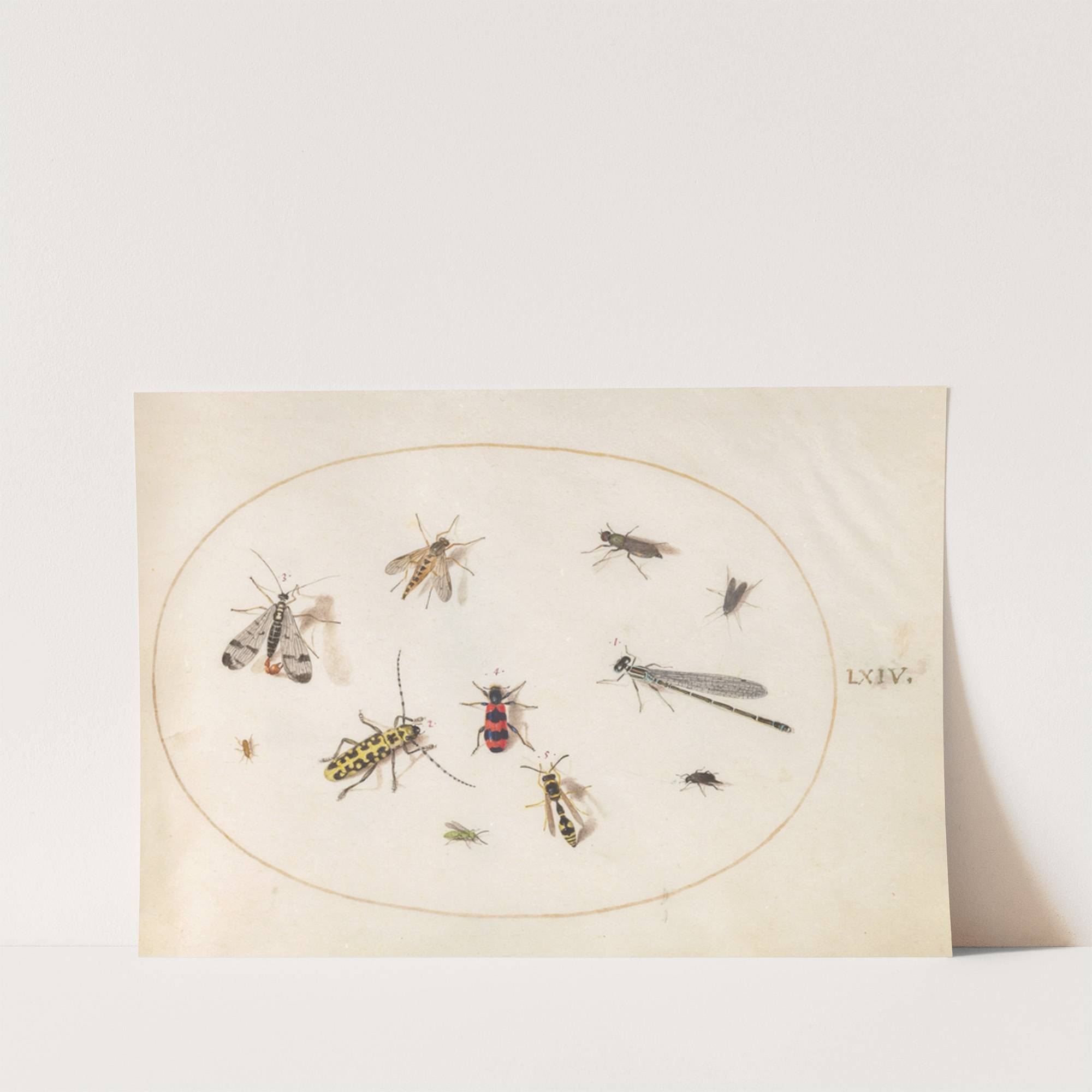 Plate 64; Eleven Insects, Including a Dragonfly and Longhorn Beetle (1575-1590) by Joris Hoefnagel - Wall Art Print