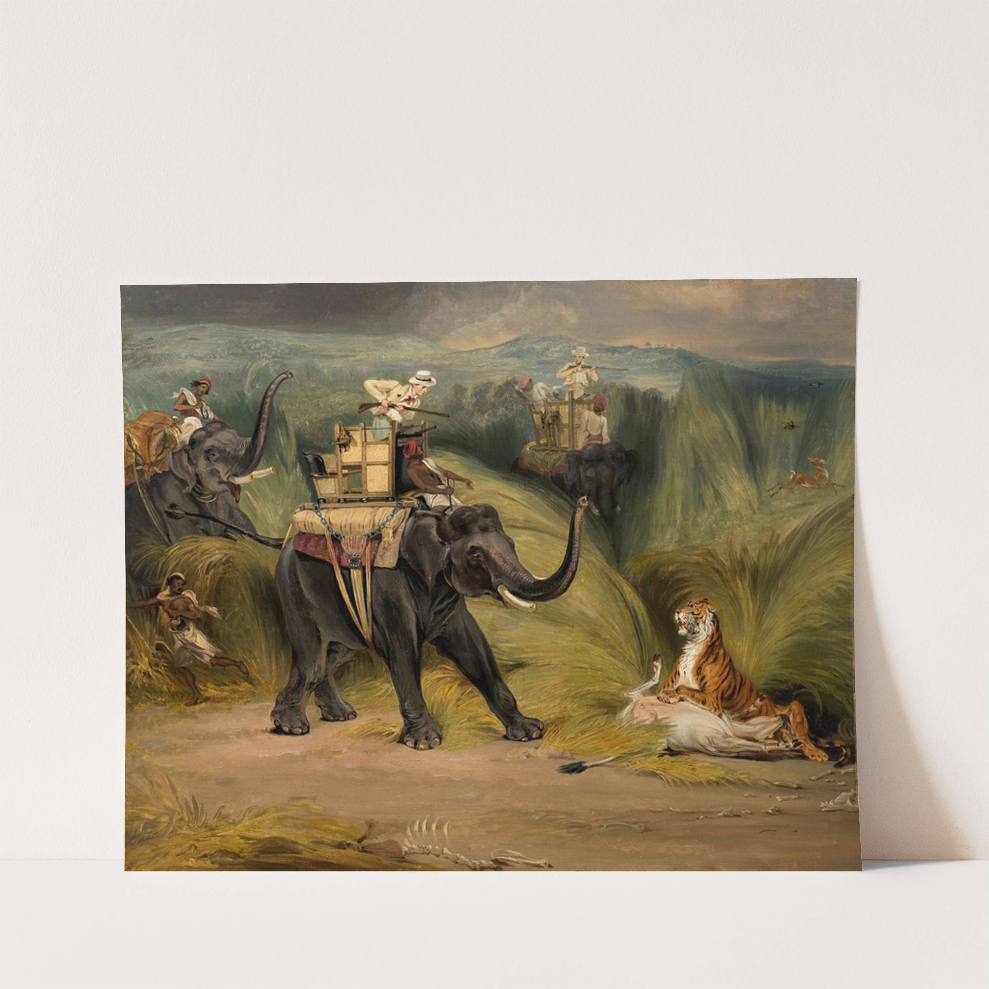 Rencontre fortuite avec un tigre lors d’une chasse à dos d’éléphant en Inde by William Henry Florio Hutchinsson - Wall Art Print