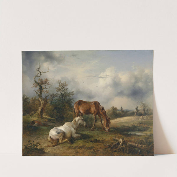 Schimmel und Fuchs auf der Weide (c1825) by Friedrich August Matthias Gauermann - Wall Art Print