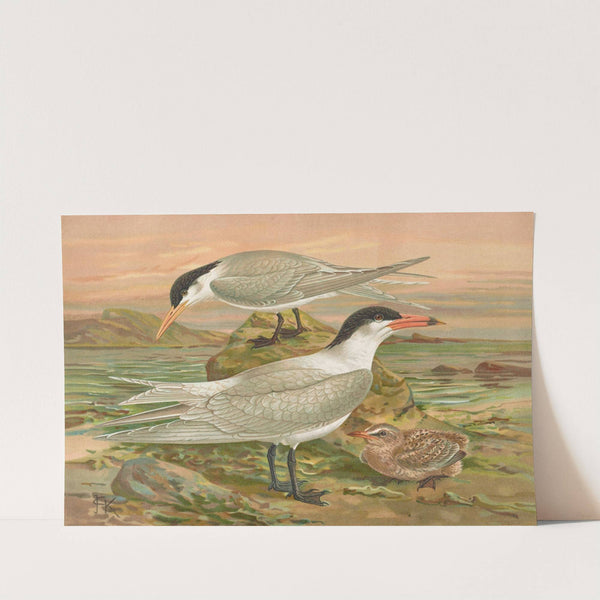 Sterna media Horsf, Sterna tschegrava Lepech by Johann Friedrich Naumann - Wall Art Print