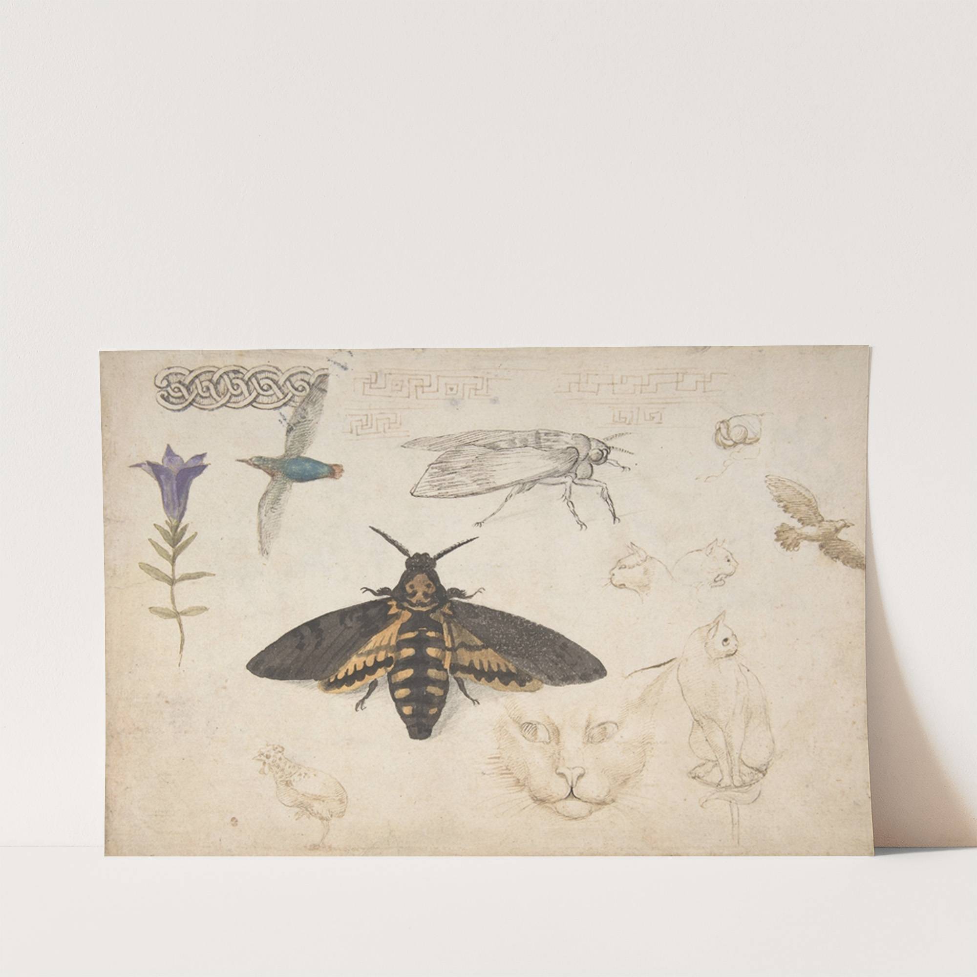 Studies of a Gentian, Moth, Birds, Cats, Interlacing Motif, and Greek Frets by Giorgio di Giovanni - Wall Art Print