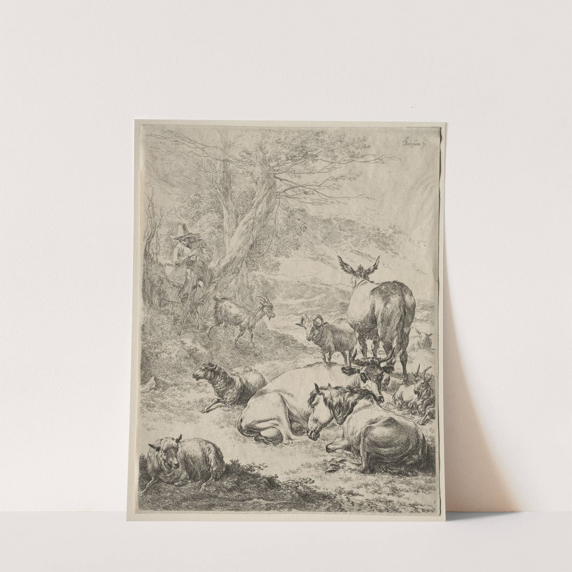 The Herd at Rest (c. 1652) by Nicolaes Pietersz. Berchem - Wall Art Print