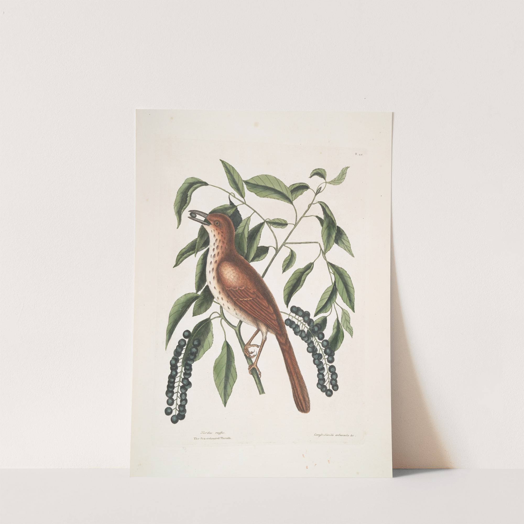 Turdus ruffus, The fox-coloured Thruth; Ceraso similis arbuscula &c., The Cluster’s Black Cherry. by Mark Catesby - Wall Art Print
