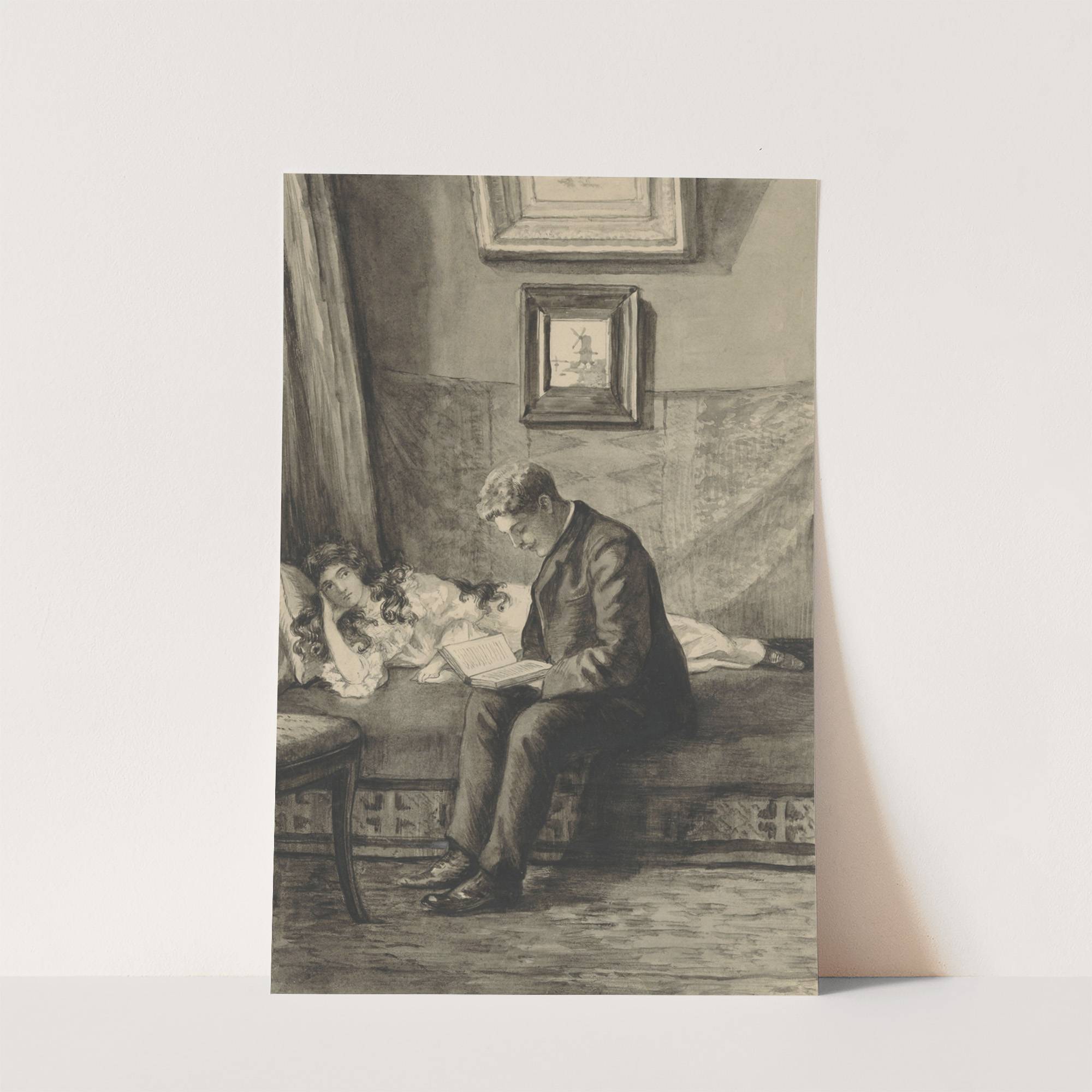 Jongeman leest meisje voor by Anna Maria Kruijff - Wall Art Print