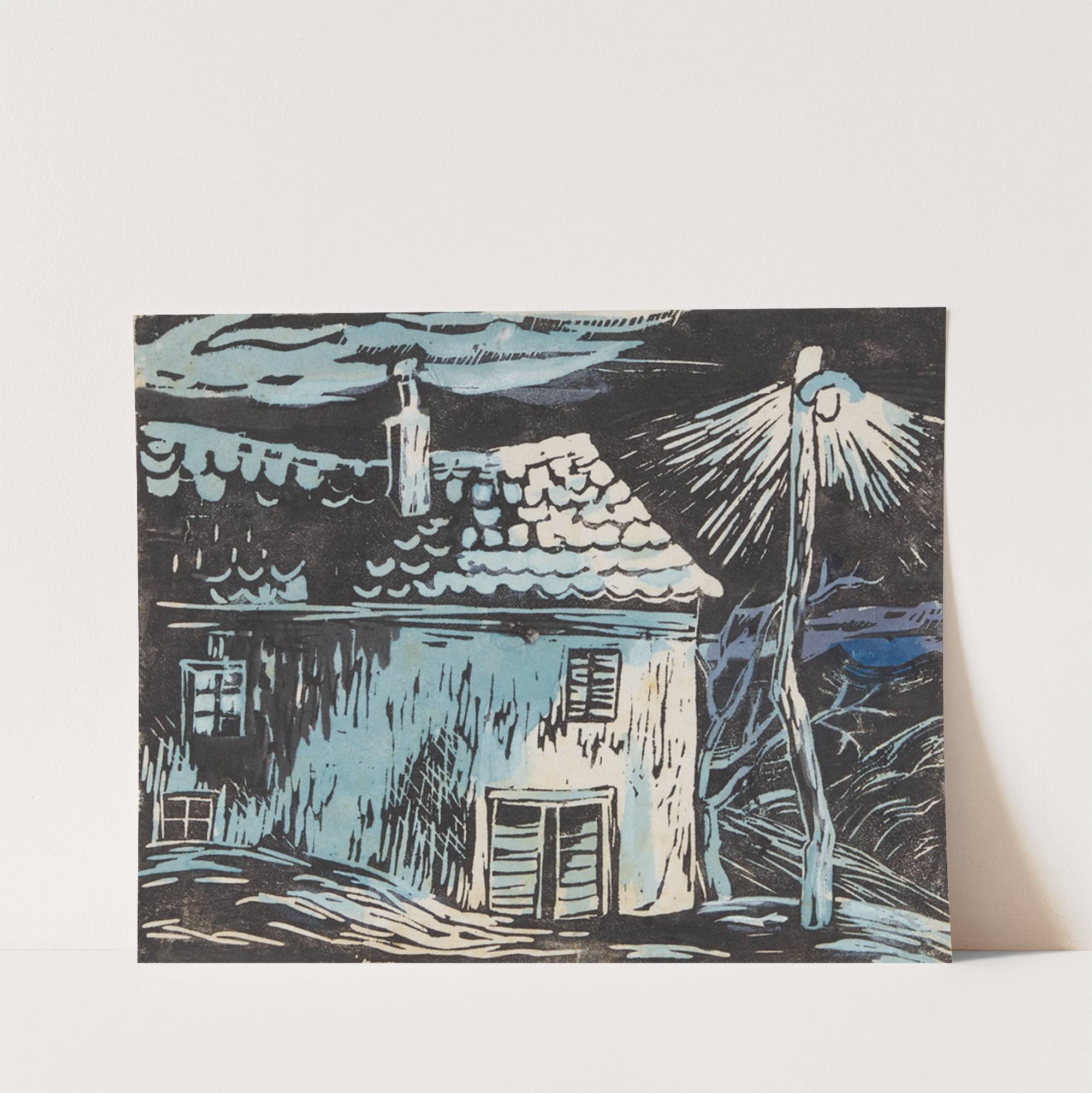 Haus bei Nacht by Anny Dollschein - Wall Art Print