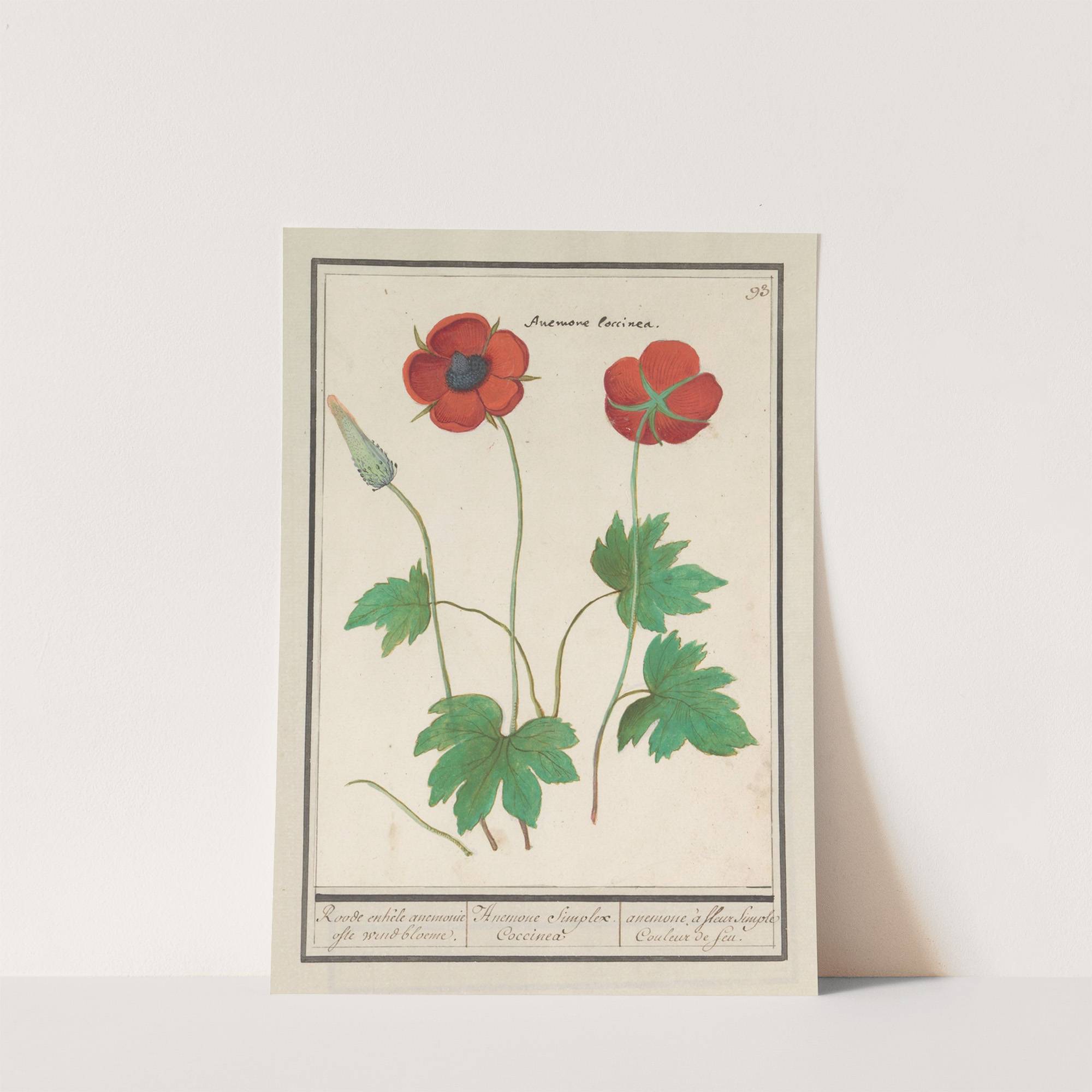 Anemoon (Anemone) Roode enkele anemonie ofte windbloeme. Anemone Simplex Coccinea. anemones à fleur Simple Couleur de feu. (1596-1610) by Anselmus Boëtius de Boodt - Wall Art Print