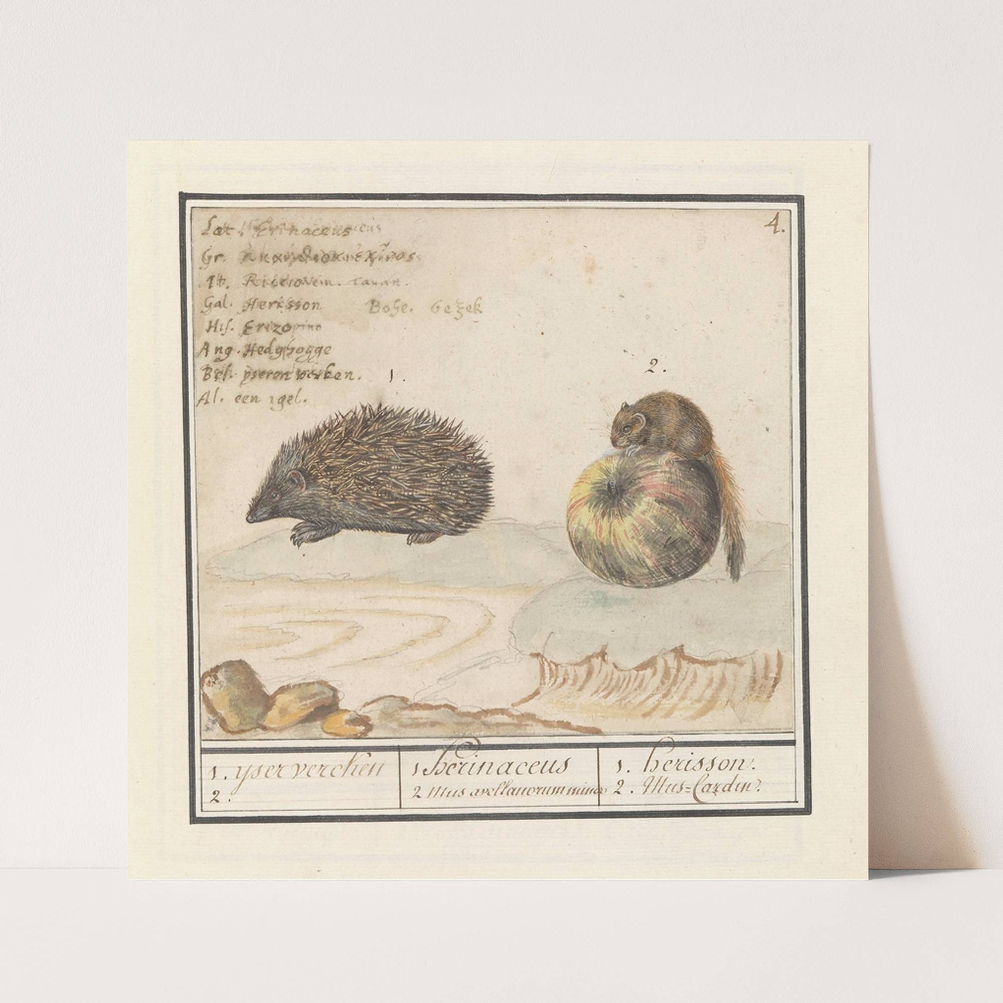 Egel (Erinaceus europaeus) en een hazelmuis (Muscardinus avellanarius) 1. yser vercken 2. (1596-1610) by Anselmus Boëtius de Boodt - Wall Art Print