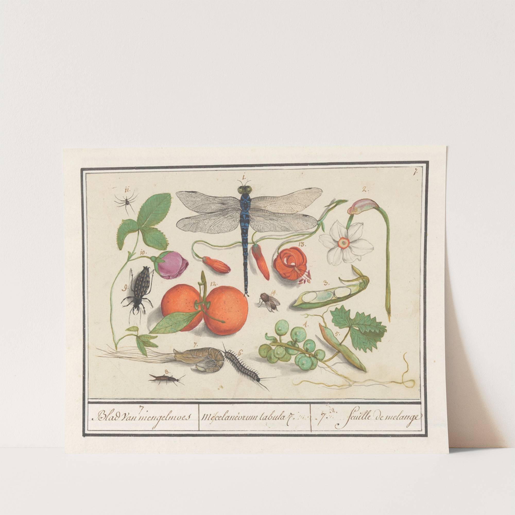 Natuurhistorische ensemble (nr. 7) 7. Blad van mengelmoes Miscelaniorum tabula 7. 7. feuille de melange (1596-1610) by Anselmus Boëtius de Boodt - Wall Art Print