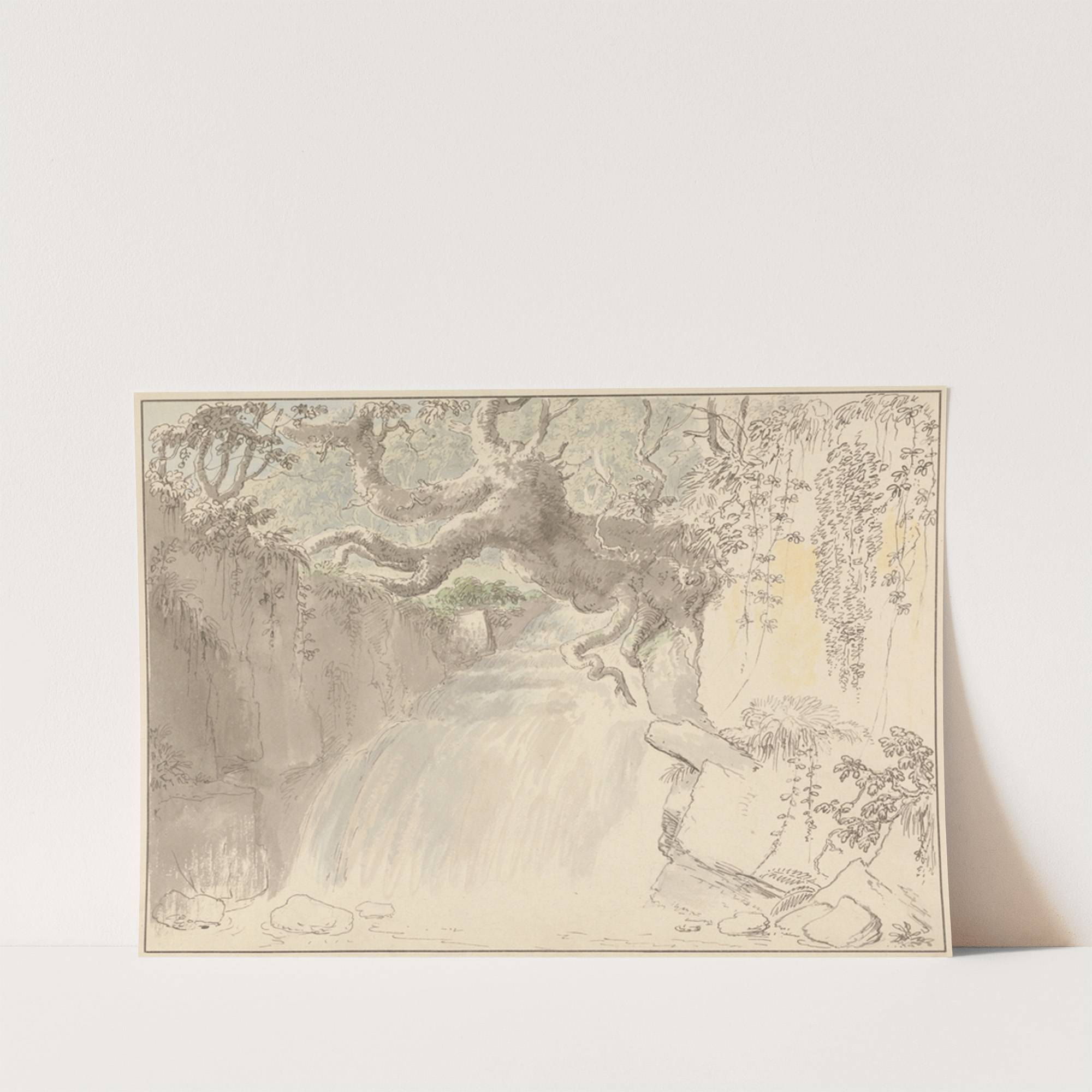 Waterfall and Tree Trunk by Anthony Devis - Wall Art Print